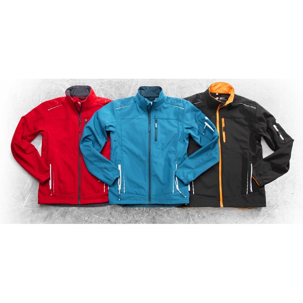 Bunda VISION H9173 pánská softshellová modrá funkční designová bunda vodoodpudivá a větruodolná díky technologii ElasticTech lehká a prodyšná zapínání na zip, 4 kapsy nastavitelný spodní lem reflexní potisk, ozdobný potisk na sedle materiál: 100% polyester, 285 g/m2, podšívka fleese barva: modrá, černá, červená velikosti: S - XXXL