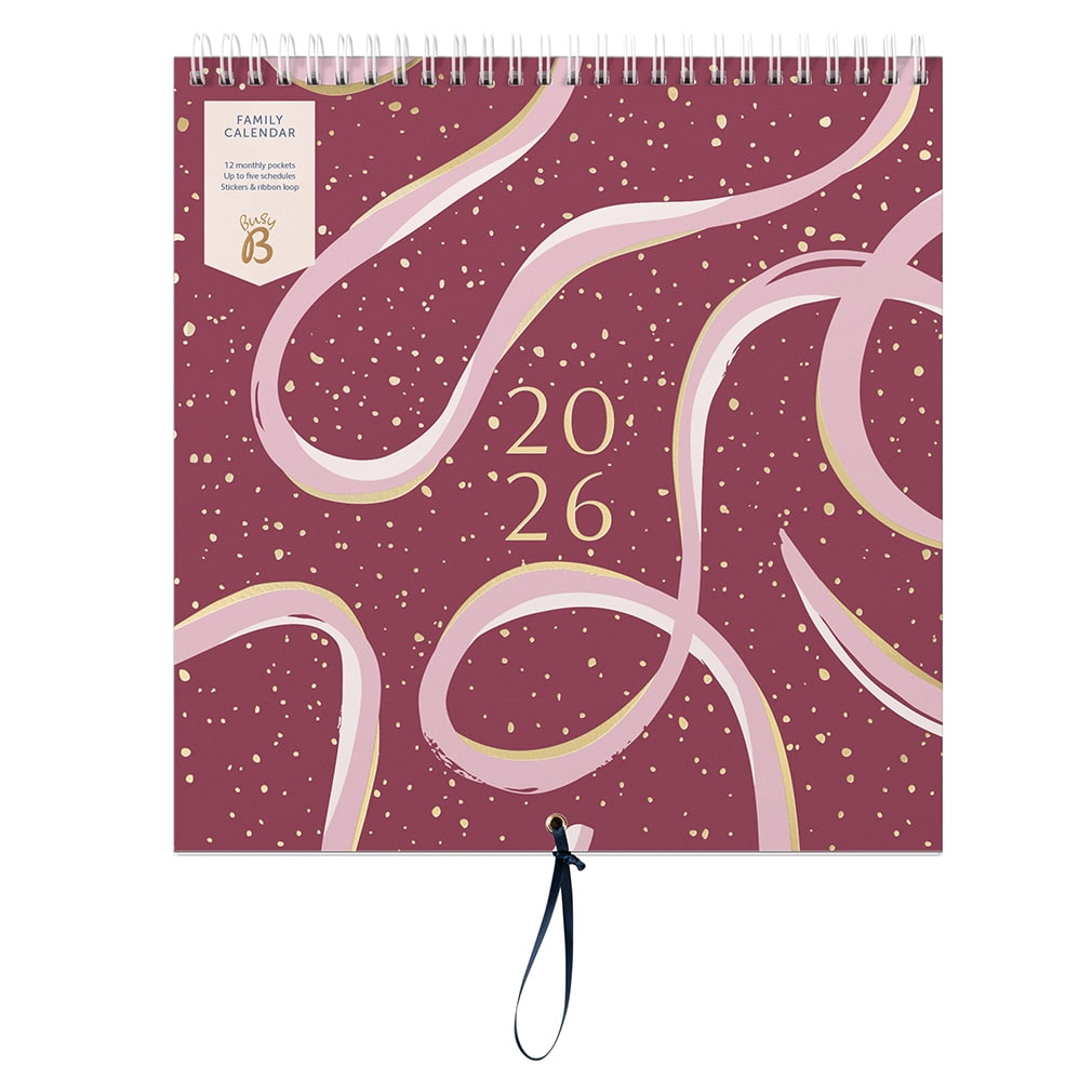 Busy B Rodinný nástěnný kalendář Burgundy Ribbon 2026, červená barva, papír. Máte rodinu s dětmi a každý spoustu aktivit? Pak potřebujete skvělé manažerské dovednosti, anebo tento praktický
