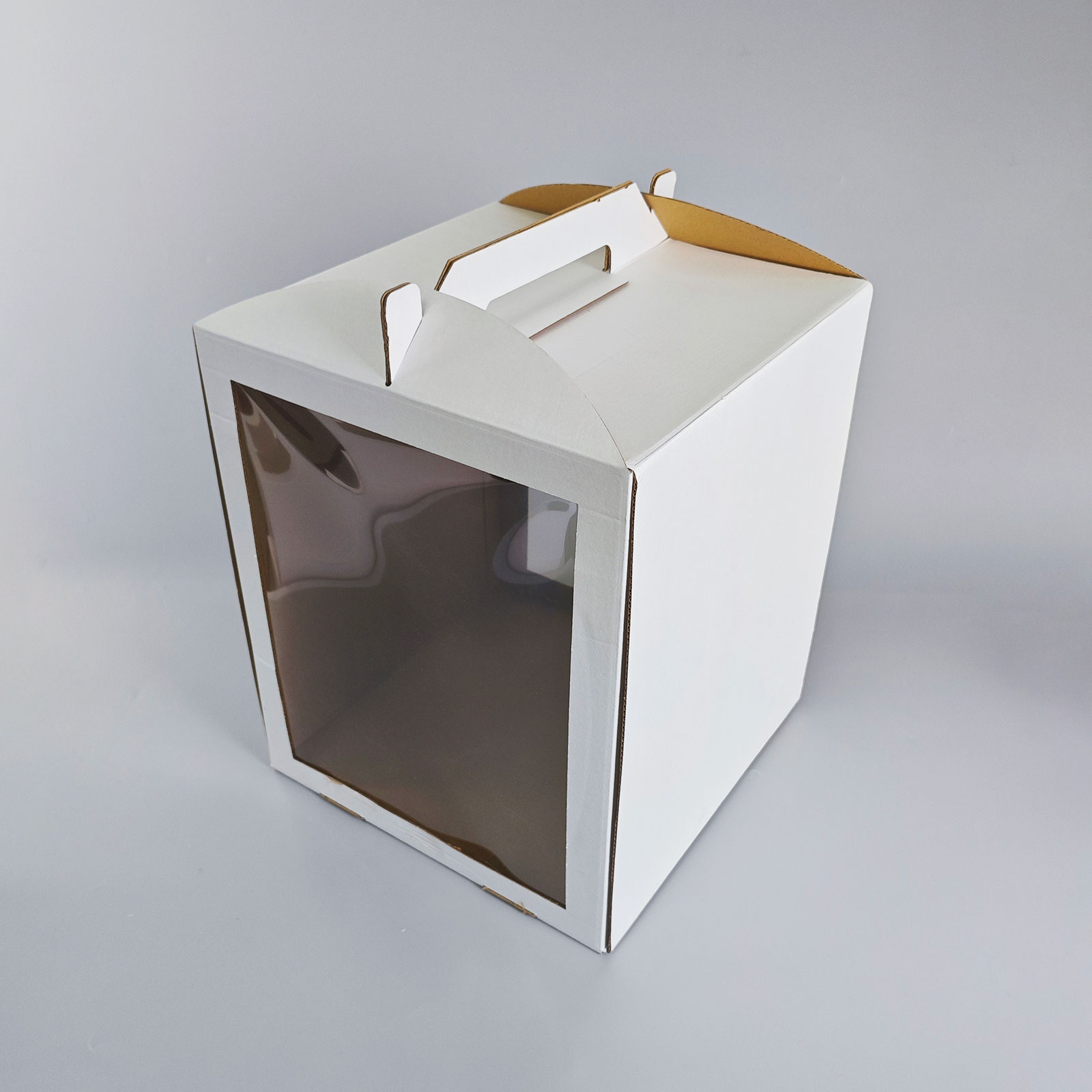 Pevná a elegantní krabice s praktickým držadlem a dvěma průhlednými okny pro dokonalou prezentaci dortů. Ideální pro cukrárny i domácí pekaře. Krabice je z vnitřní strany hnědá. Vyrobena z pevného, kvalitního kartonu, který zajišťuje stabilitu a ochranu při přepravě. Dvě průhledná okénka umožňují snadné nahlédnutí na obsah, což ocení nejen zákazníci v cukrárně, ale i obdarovaní při předání dortu. Hlavní vlastnosti: Dvě průhledná okna pro atraktivní prezentaci dortu Integrované držadlo pro pohodlné přenášení Jednoduché skládání bez potřeby lepení Vhodná pro kulaté i hranaté dorty Využití: Ideální pro cukráře, kavárny, svatební dorty, narozeninové oslavy i běžné zákazníky, kteří chtějí dort přepravit bezpečně a stylově. Rozměr: 30x30x35cm Při zakoupení tohoto produktu přispíváte 2Kč na skvělý projekt ,,Dortem proti rakovině". Jedná se o projekt na podporu onkologicky nemocných dětí a jsme moc rádi,že můžeme být součástí. Děkujeme Vám.