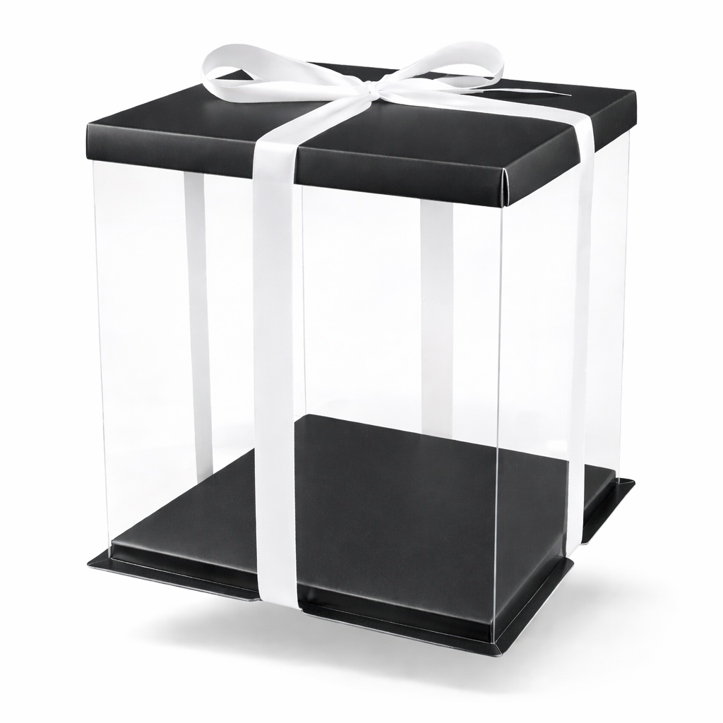 Elegantní průhledný box na dorty s černým podnosem a víkem. Box je opakovaně použitelný, což vám umožní předvést své dorty při každé příležitosti. Doporučujeme pod dort použít ještě tenkou podložku, aby se zabránilo poškození spodku boxu. Box je možné použít i na jiné dárkové předměty Stuha není součástí balení! Doporučujeme stuhu o šířce 25 mm Rozměry: 26x26x31 Při zakoupení tohoto produktu přispíváte 2Kč na skvělý projekt ,,Dortem proti rakovině". Jedná se o projekt na podporu onkologicky nemocných dětí a jsme moc rádi,že můžeme být součástí. Děkujeme Vám.
