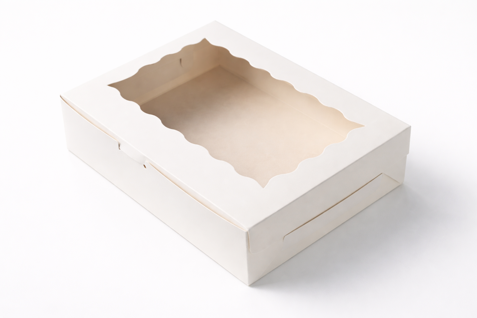 Cake star krabička bílá s okénkem. Rozměr: 24x20x6cm