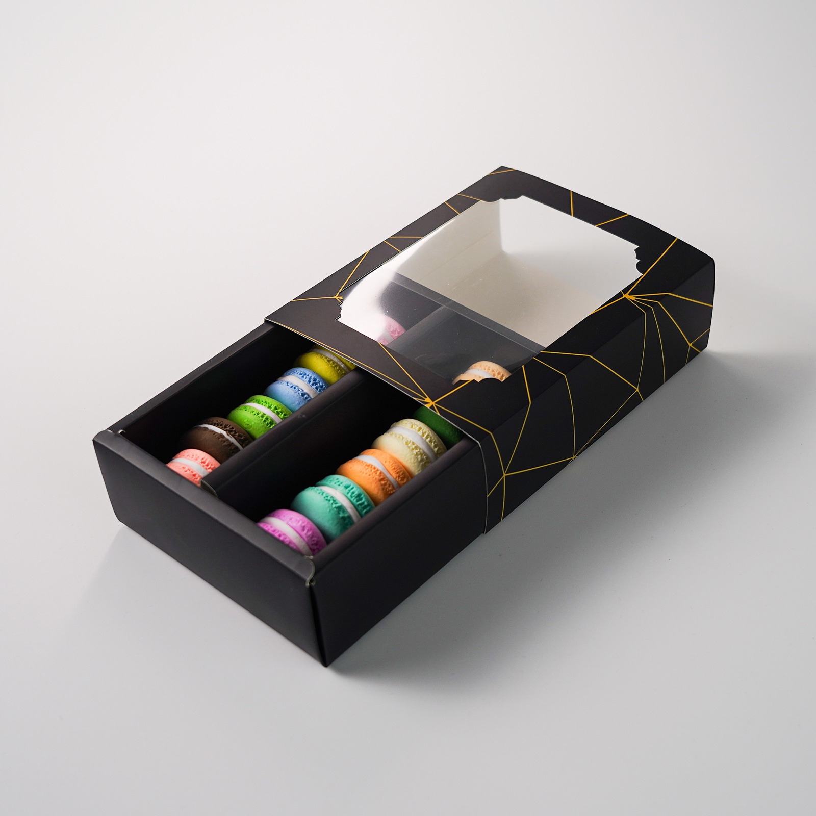 Elegantní a praktická krabička na makronky. Na 10 kusů. Rozměry: 15,5 x 12,5 x 5,2cm