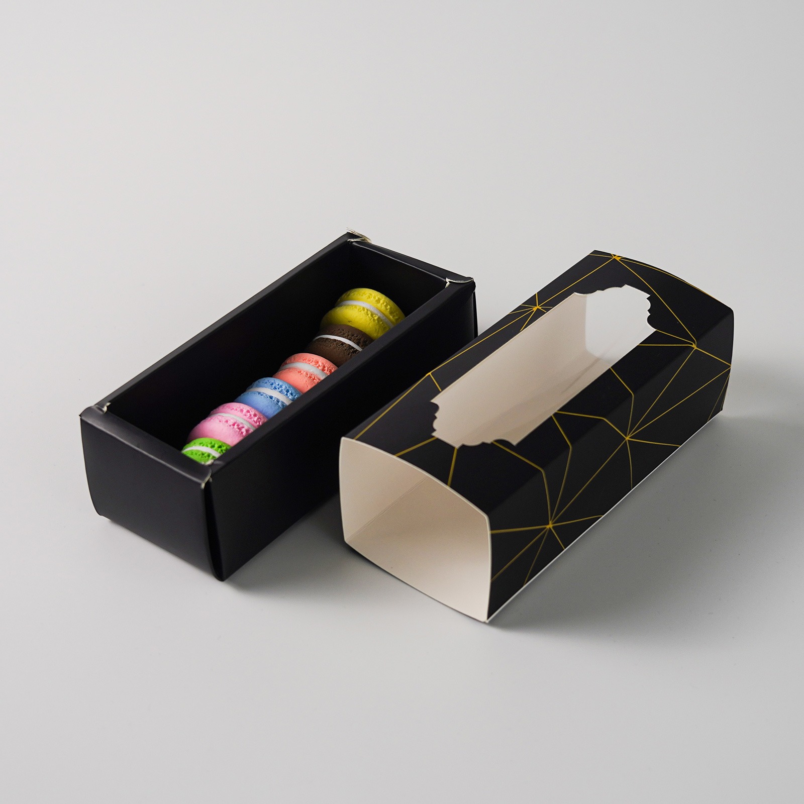 Elegantní a praktická krabička na makronky. Na 5 kusů. Rozměry: 15,5 x 6,5 x 5,2cm