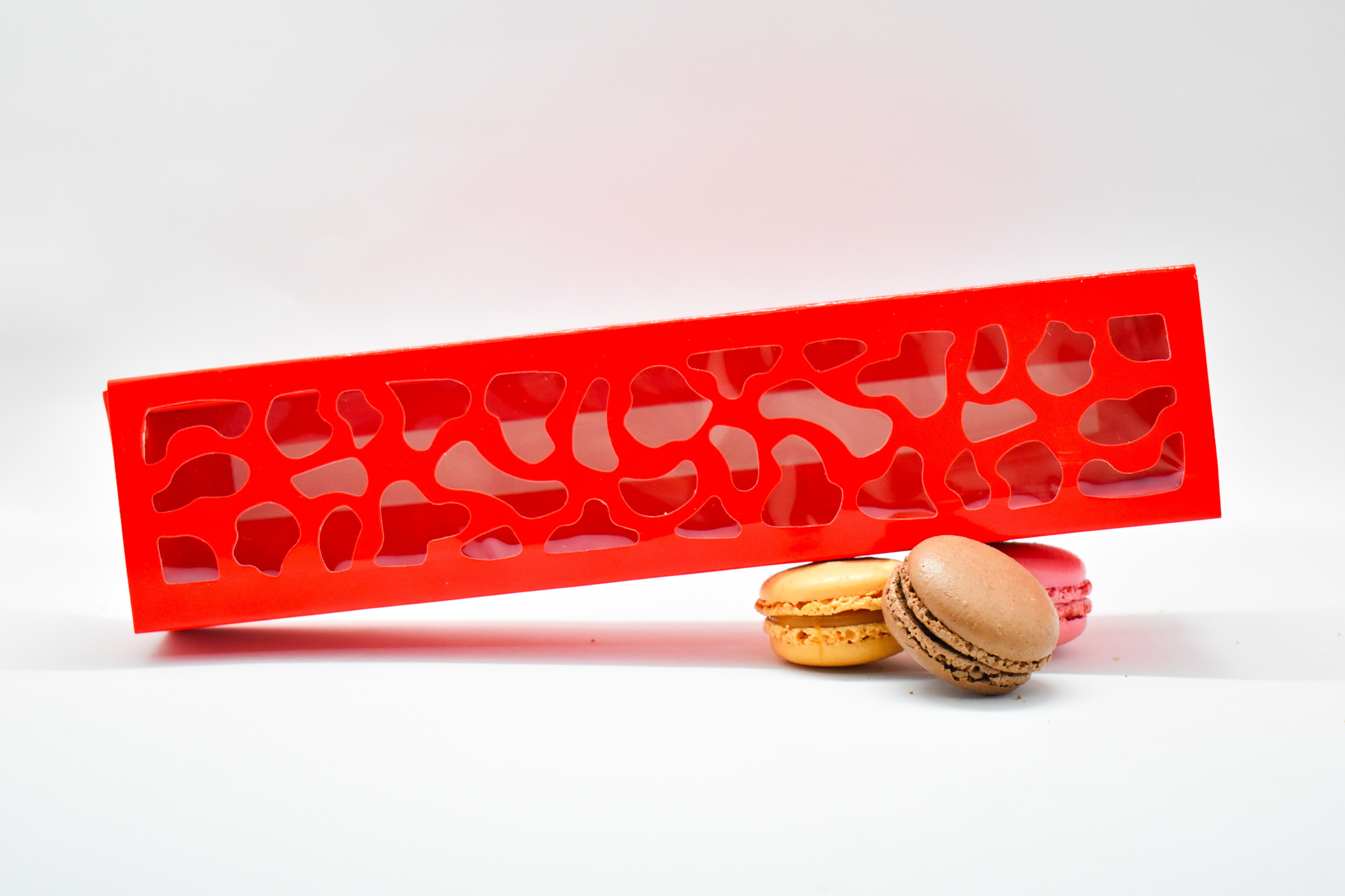 Cake star Krabička na makronky červená se vzorovým okénkem 25,8x6x4cm (na 10 kusů)