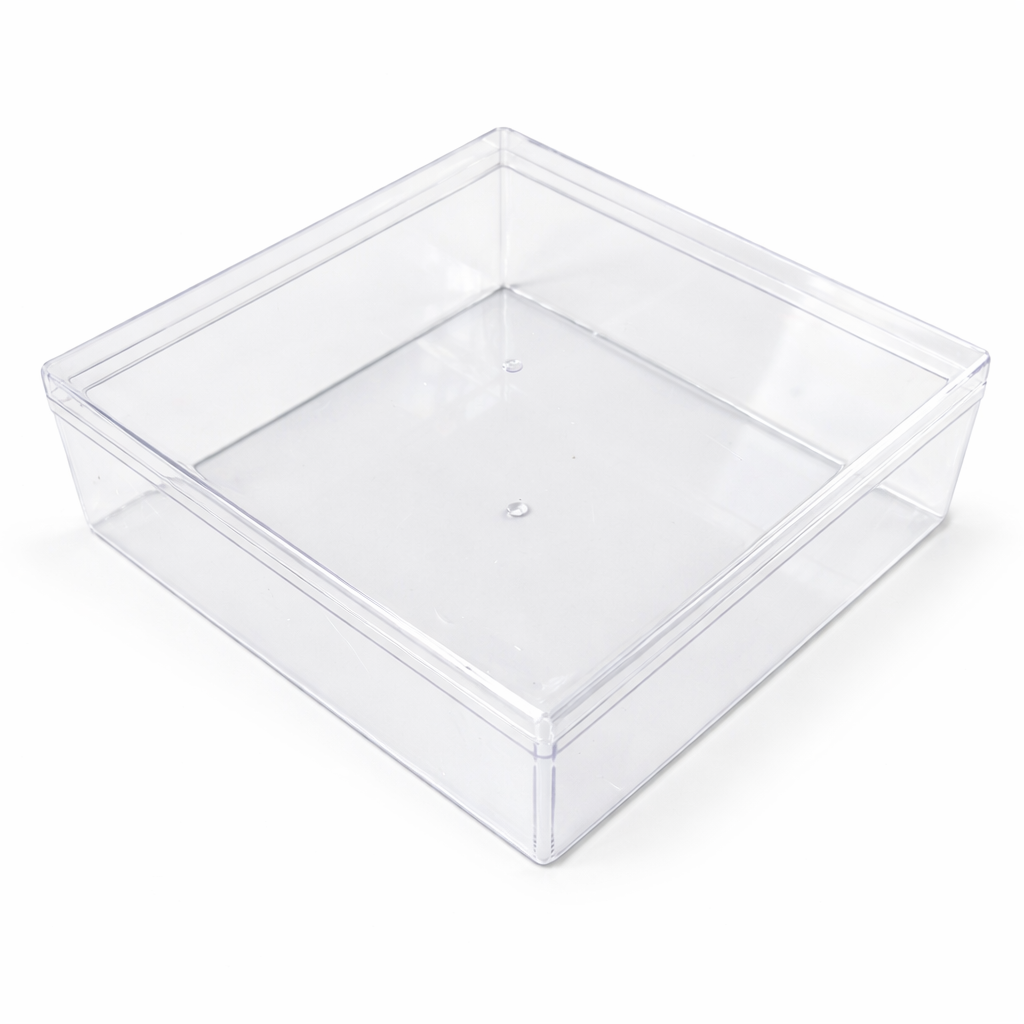 Čirá plastová krabička s víčkem o rozměrech 18,5 x 18,5 x 6cm je ideálním řešením pro balení a prezentaci dezertů, krémů, zákusků či mini dortíků. Díky transparentnímu designu krásně vynikne obsah, což oceníte při prodeji i servírování. Krabička je vyrobena z kvalitního, pevného plastu, je lehce omyvatelná a znovu použitelná. Vlastnosti: Materiál: plast (PP) Barva: čirá Rozměr: 18,5 x 18,5 x 6cm Uzavíratelné víčko Vhodné pro dezerty, krémy, mini dortíky, zákusky Použití: cukrárny, catering, domácí využití