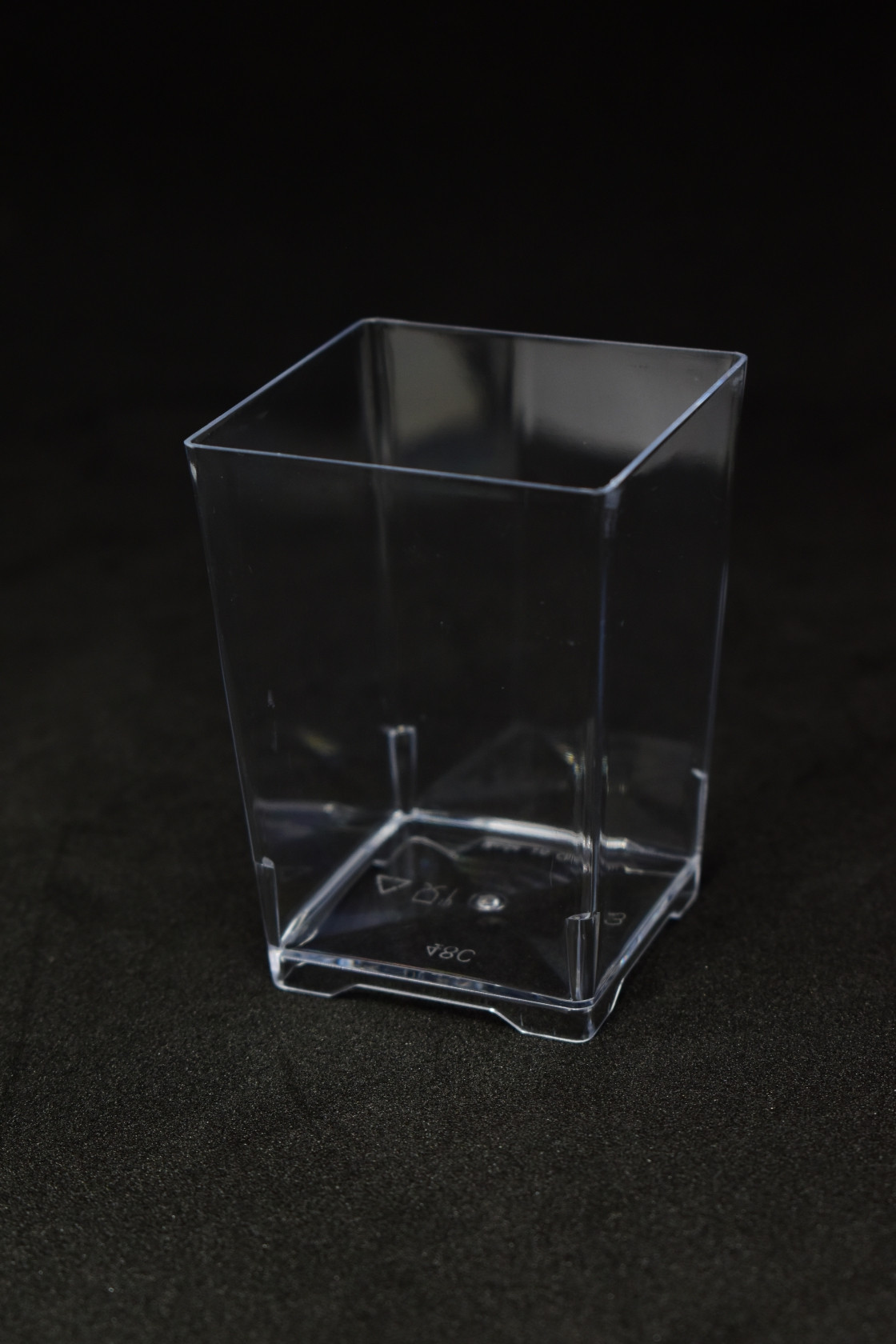 Stylový plastový kelímek určený pro servírování finger food, dezertů, dipů nebo malých předkrmů. Díky svému modernímu designu je ideální pro rauty, cateringové akce, svatby i oslavy. Vyroben z kvalitního, čirého plastu, který působí esteticky a zároveň je pevný a lehký. Kelímek je určen pro jednorázové použití. - Objem: 110ml - Materiál: čirý plast- Rozměry: šířka nahoře 5cm, šířka dole 4cm, výška 6,9cm Uvedená cena je za 10ks
