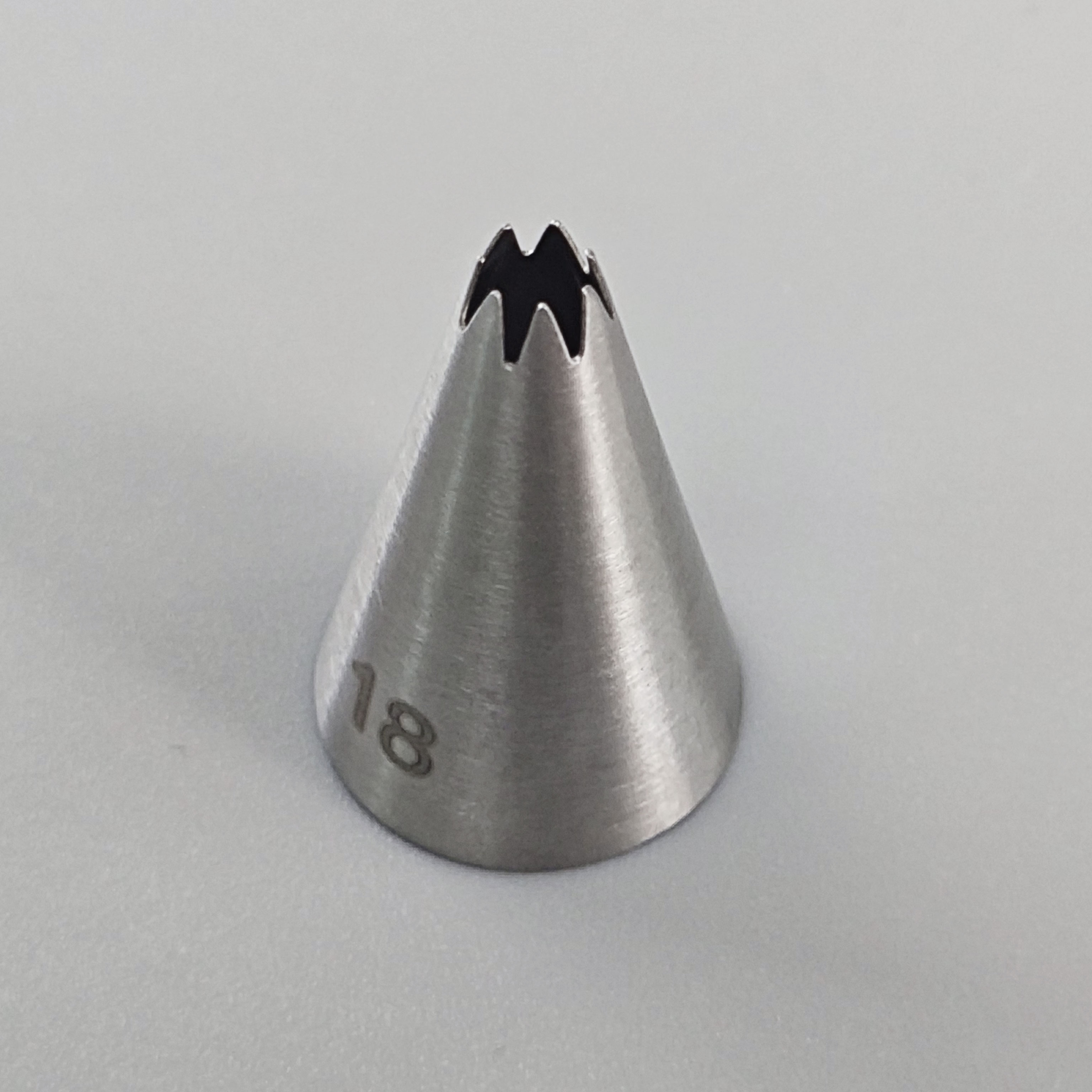 Cake star trezírovací špička č.18 Kvalitní trezírovací špička z nerezové oceli je perfektním nástrojem pro zdobení dortů, cupcakes, sušenek nebo dezertů. Díky preciznímu provedení umožňuje vytvářet jemné detaily, květy, hvězdičky, okraje či další dekorace. Vhodná pro použití s cukrářskými sáčky – bez nutnosti použití adaptérů. Vlastnosti:- Vyrobena z odolné nerezové oceli- Snadno omyvatelná a znovupoužitelná- Vhodná do myčky nádobí- Ideální pro krémy, šlehačku, máslový krém i bílkovou polevu