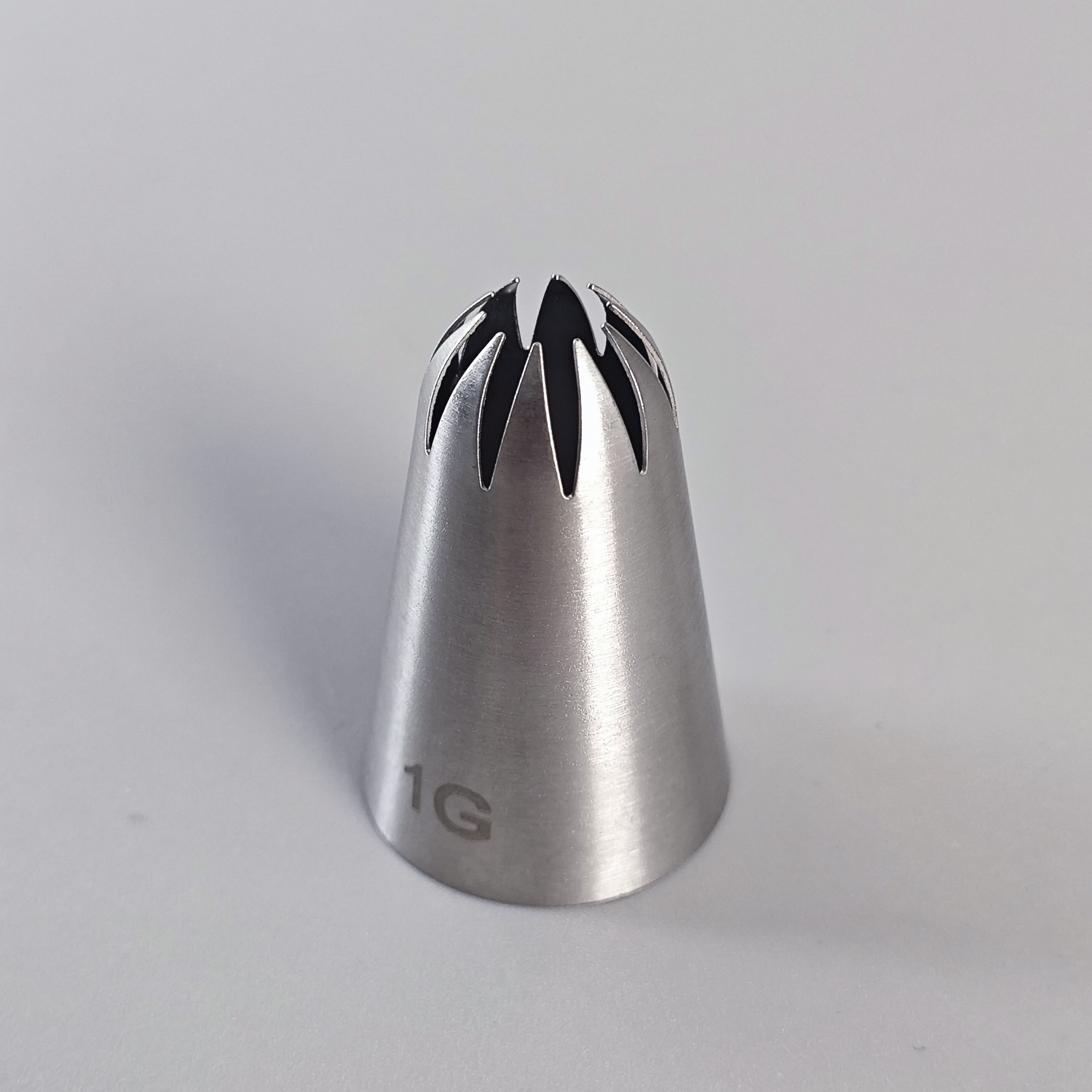 Cake star trezírovací špička č.1G Kvalitní trezírovací špička z nerezové oceli je perfektním nástrojem pro zdobení dortů, cupcakes, sušenek nebo dezertů. Díky preciznímu provedení umožňuje vytvářet jemné detaily, květy, hvězdičky, okraje či další dekorace. Vhodná pro použití s cukrářskými sáčky – bez nutnosti použití adaptérů. Vlastnosti:- Vyrobena z odolné nerezové oceli- Snadno omyvatelná a znovupoužitelná- Vhodná do myčky nádobí- Ideální pro krémy, šlehačku, máslový krém i bílkovou polevu