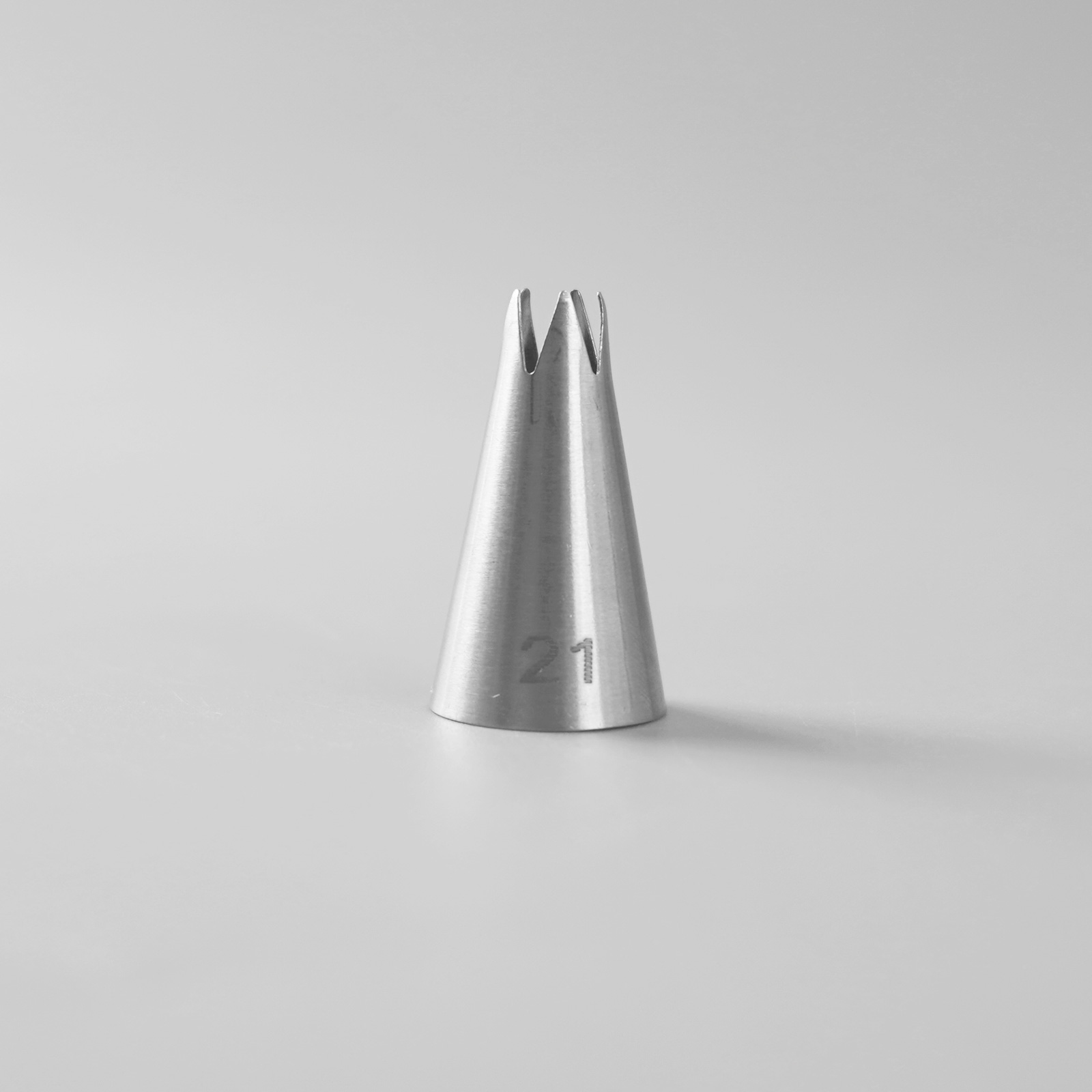 Cake star trezírovací špička č.21 Kvalitní trezírovací špička z nerezové oceli je perfektním nástrojem pro zdobení dortů, cupcakes, sušenek nebo dezertů. Díky preciznímu provedení umožňuje vytvářet jemné detaily, květy, hvězdičky, okraje či další dekorace. Vhodná pro použití s cukrářskými sáčky – bez nutnosti použití adaptérů. Vlastnosti:- Vyrobena z odolné nerezové oceli- Snadno omyvatelná a znovupoužitelná- Vhodná do myčky nádobí- Ideální pro krémy, šlehačku, máslový krém i bílkovou polevu