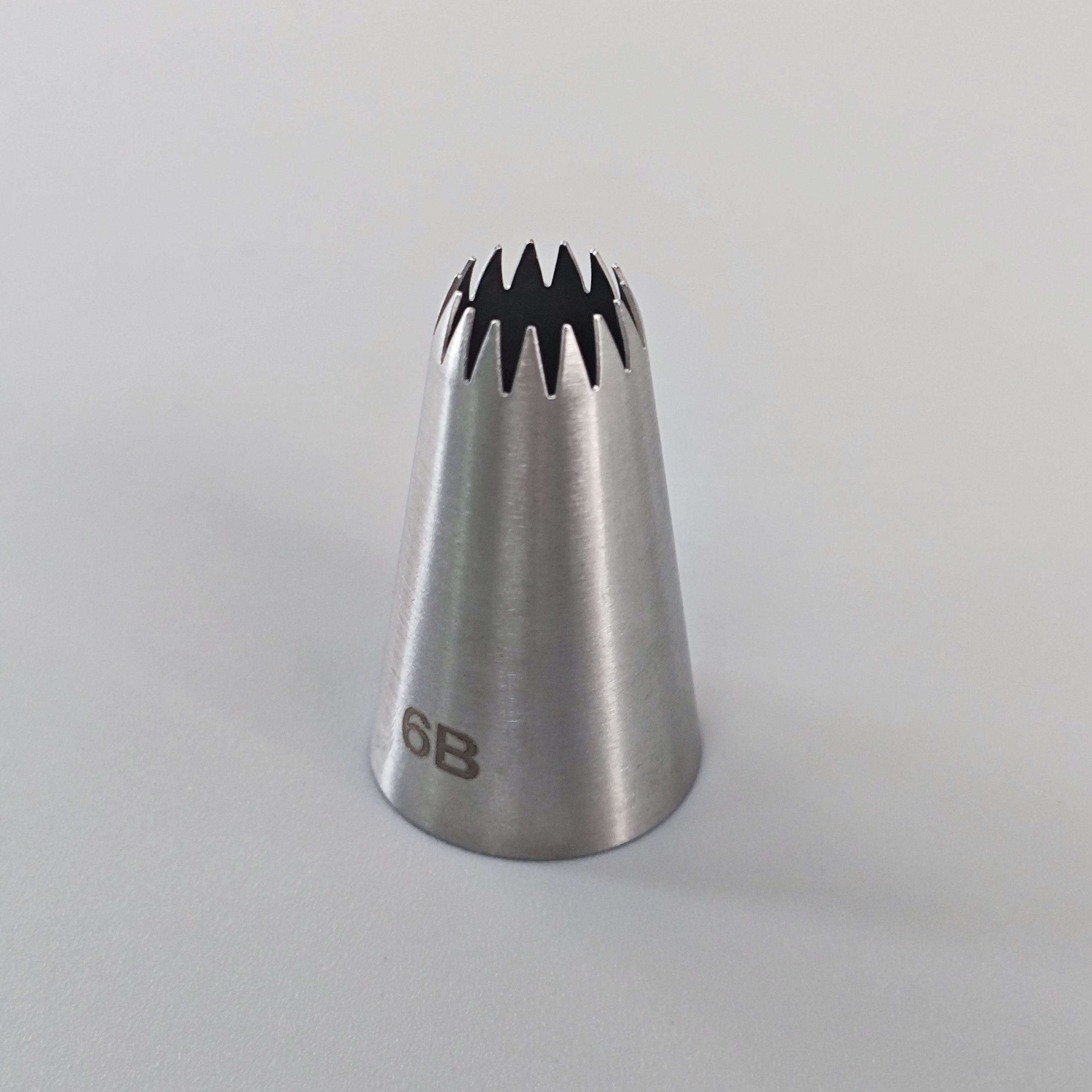 Cake star trezírovací špička č.6B Kvalitní trezírovací špička z nerezové oceli je perfektním nástrojem pro zdobení dortů, cupcakes, sušenek nebo dezertů. Díky preciznímu provedení umožňuje vytvářet jemné detaily, květy, hvězdičky, okraje či další dekorace. Vhodná pro použití s cukrářskými sáčky – bez nutnosti použití adaptérů. Vlastnosti:- Vyrobena z odolné nerezové oceli- Snadno omyvatelná a znovupoužitelná- Vhodná do myčky nádobí- Ideální pro krémy, šlehačku, máslový krém i bílkovou polevu