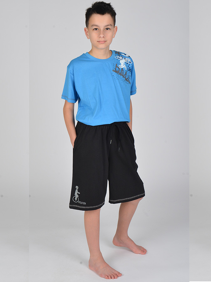 Chlapecké kraťasy z kolekce Calvi 2025. příjemný materiál 100% Bavlna barva černá drobný potisk na boční straně