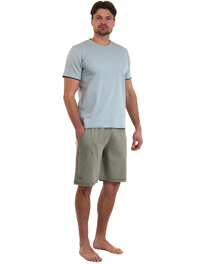 Pánské kraťasy. Kolekce Calvi 2025. příjemný materiál 100% Bavlna barva šedá drobný potisk na boční straně