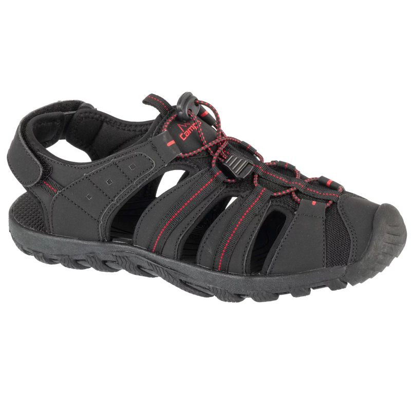 Vlastnosti: Pánské sandály Campus Ideální pro pěší turistiku Silnější podrážka se vzorkem se osvědčí za všech podmínek Nastavitelná šířka Tvarovaná podrážka Univerzální barevné provedení Dominantní materiál syntetika Barva: černá