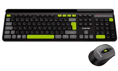 CANYON CNS-HSETW5BK-CS černá / bezdrátový SET CS klávesnice + optická myš / 2.4 Ghz / 105 kláves / CZ/SK