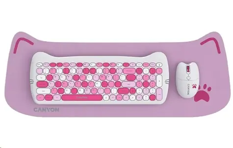 CANYON Kitty edice HSET-W6 růžová / bezdrátový SET CS klávesnice + optická myš + ochranné pouzdro + podložka (CNS-HSETW6PK-CS)