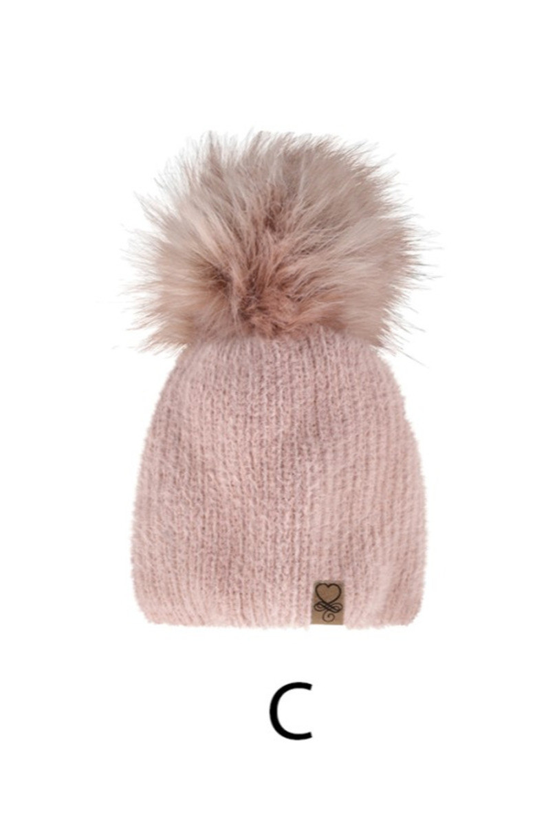 Dívčí čepice s bambulí, vyrobená ze spodníóy vrstvy nadýchaného polyamidu. .