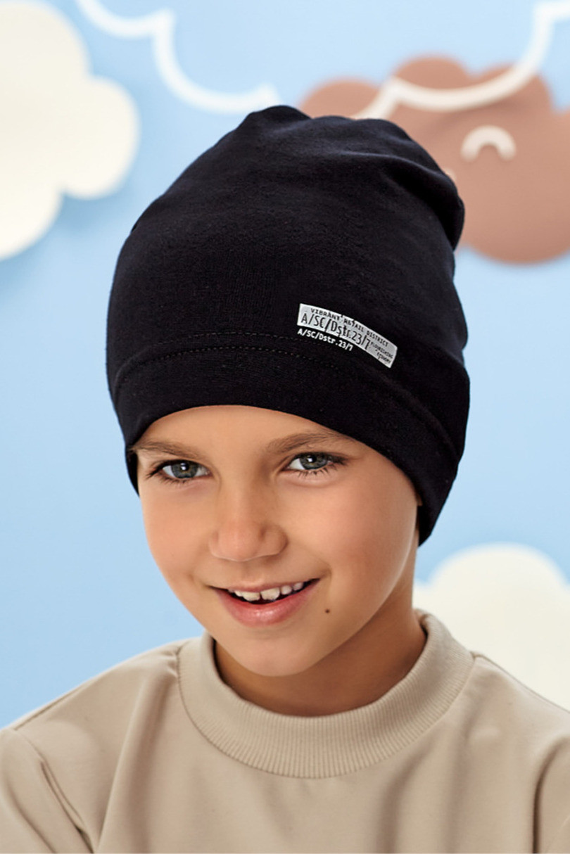 Chlapecká čepice z jedné vrstvy jemné bavlny s malou aplikací. .