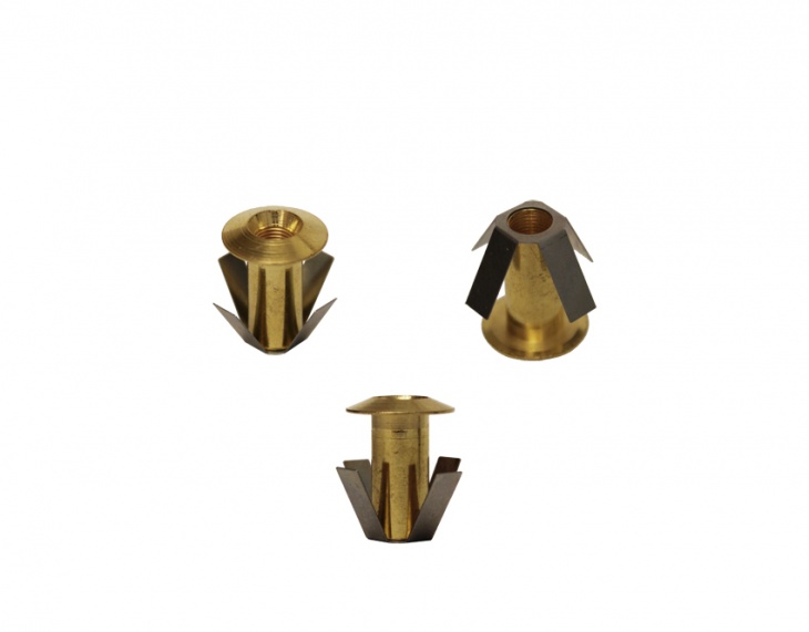Zakončení vláken pro zapuštění do stěny pro závit M5 ve zlatém provedení.