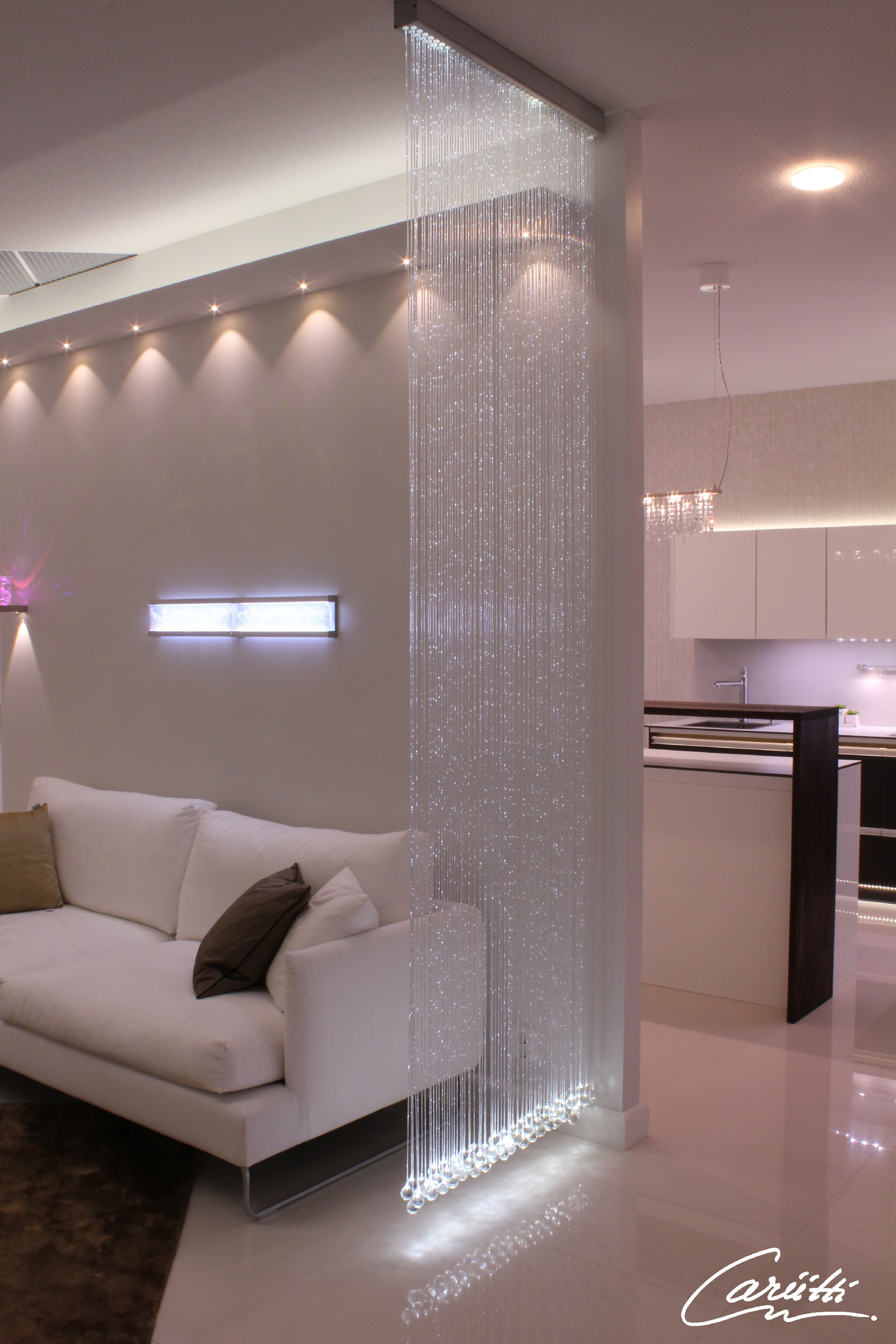 Světelný závěs poskytuje tu pravou pastvu pro oči. Lehká světelná vlákna jsou uchycena do kovového základu, jehož součástí je i osvětlovací projektor.