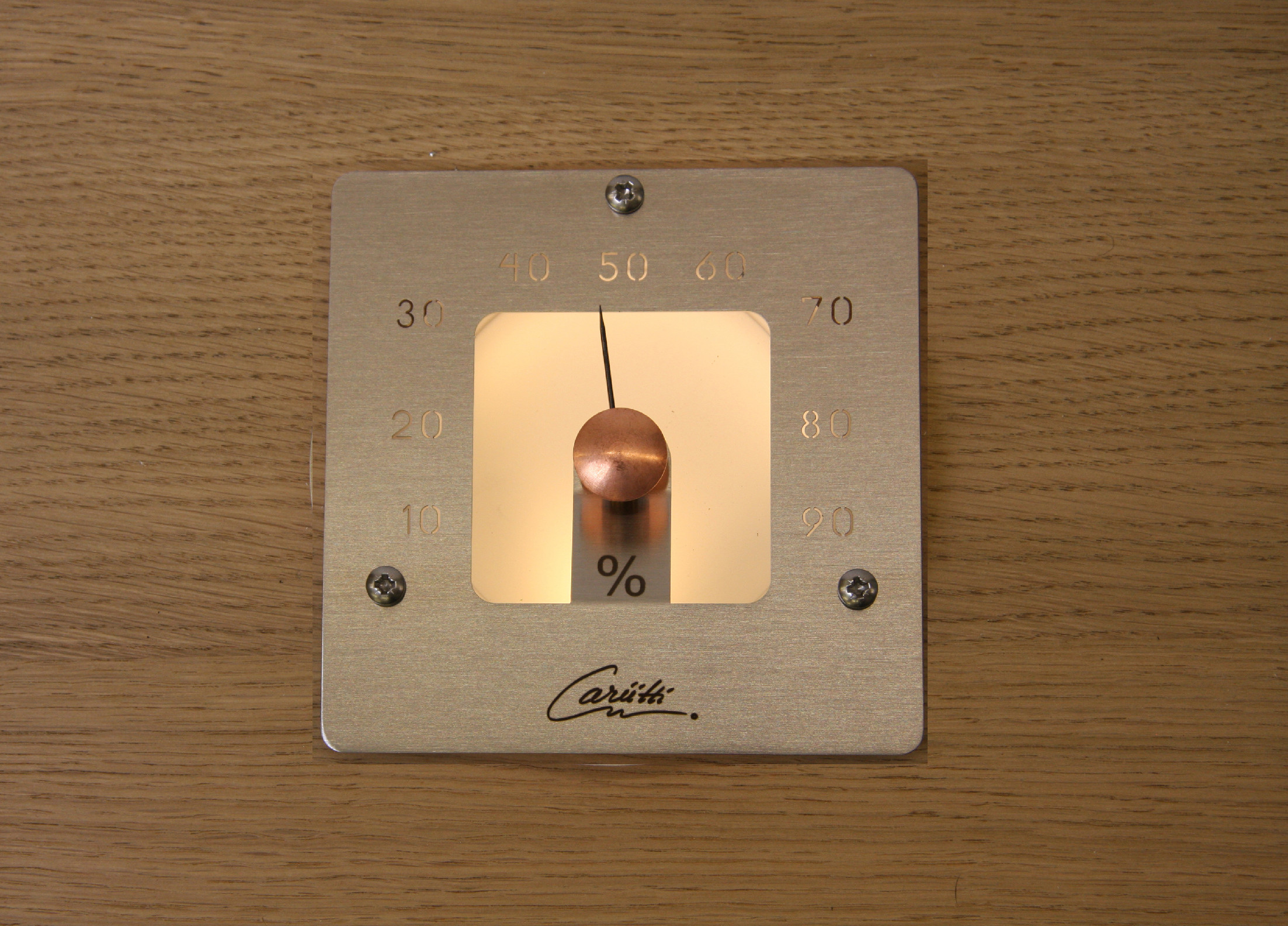 Tento čtvercový teploměr je vyroben z matného skla a nerezové oceli. Teploměr je osvětlen jedním 2-4 mm vláknem. Upevňuje se pomocí tří nerezových šroubů.