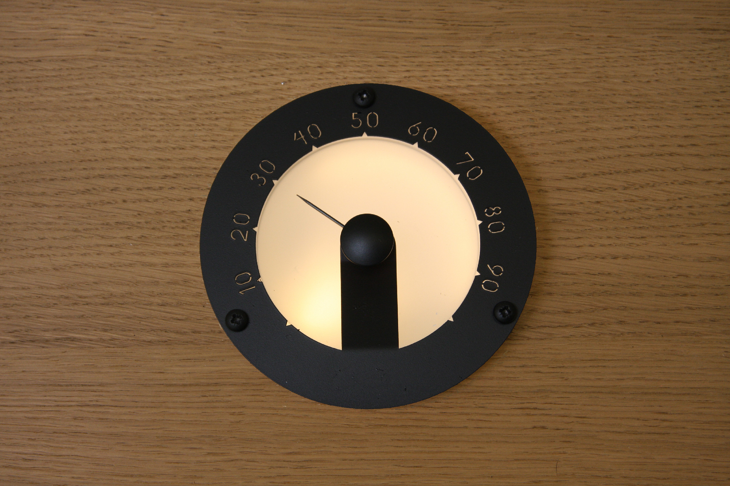 Tento luxusní vlhkoměr do sauny Cariitti je vyroben ze saténového skla a nerezové oceli v černém provedení. Při použití projektoru se změnou barev vytváří krásný efekt. Na podsvícení doporučujeme 2-4 mm vlákno. Upevňuje se pomocí tří nerezových šroubů.