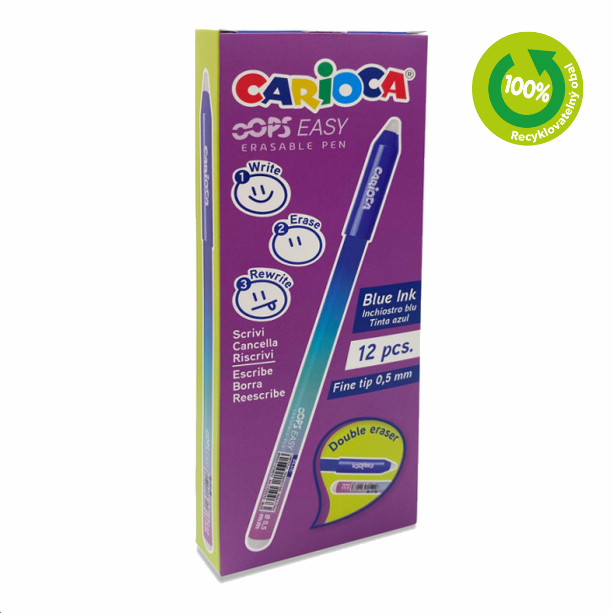 Jednorázové gumovatelné pero s modrou náplní.šířka stopy: Ø 0,7 mmprůměr hrotu: Ø 0,5 mmtermosenzitivní inkoust pro precizní a plynulé psanídvojitá guma pro snadné gumování bez poškození papírubarva náplně: modrástylový motiv pera s gradientním efektempratelné, jednorázové použitíobsah balení: 12 ks/ displej