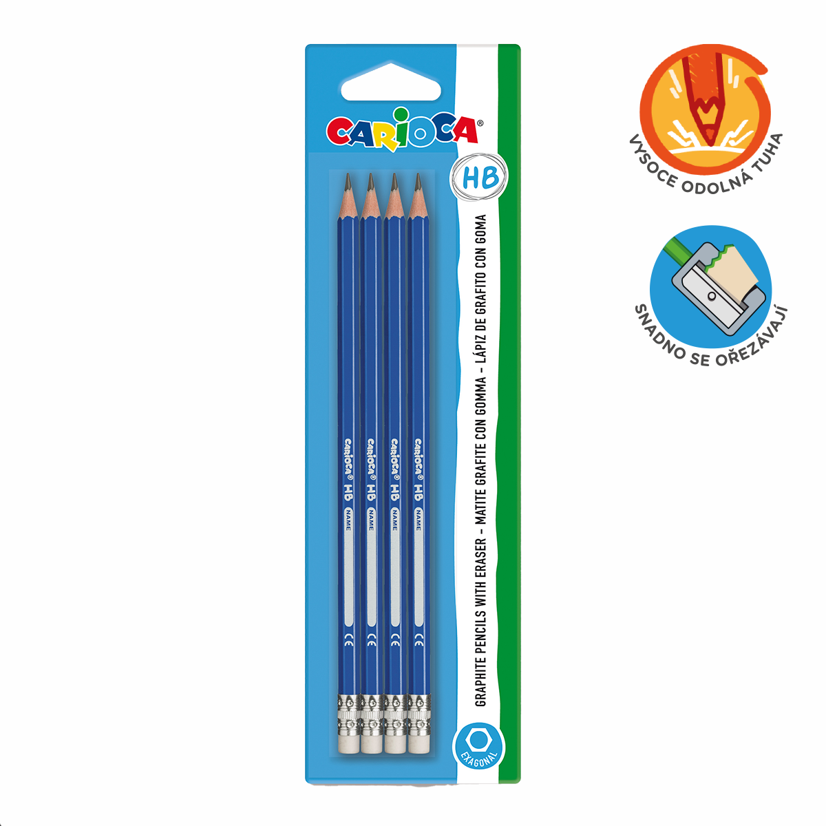 Grafitová tužka s ergonomicky tvarovaným šestihranným tělem pro každodenní psaní a kreslení. Kvalitní tuha je odolná proti pádu a tělo vyrobené z pryskyřice zaručí, že se tužka jen tak nezničí. Snadno se ořezává, integrovaná měkká pryž na koncovce. Je vhodná do školy nebo kanceláře.tvrdost tuhy: HBšestihranný tvarměkká pryž v koncovcevhodná pro každodenní psaní nebo kreslenívysoce odolná proti pádu a poškozenípopisovací štítek na těle tužkysnadno se ořezává a gumujeobsah balení: 4 ks/ blistr