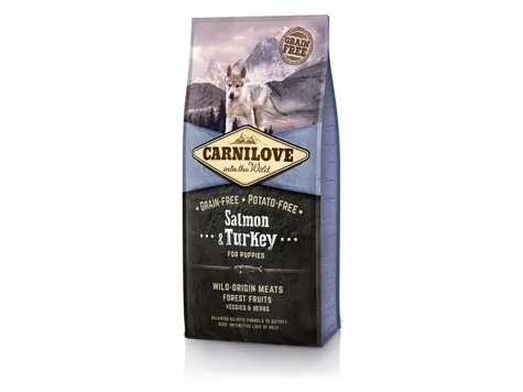 CARNILOVE Dog Salmon Turkey Puppy 12kg / Kompletní krmivo pro štěňata / bez obilovin a brambor / od 3 měsíců do 1 roku