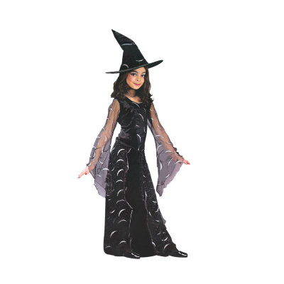 Čarodějnický kostým pro dívky ve věku cca 12–14 let. Sada obsahuje klobouk a kostým.