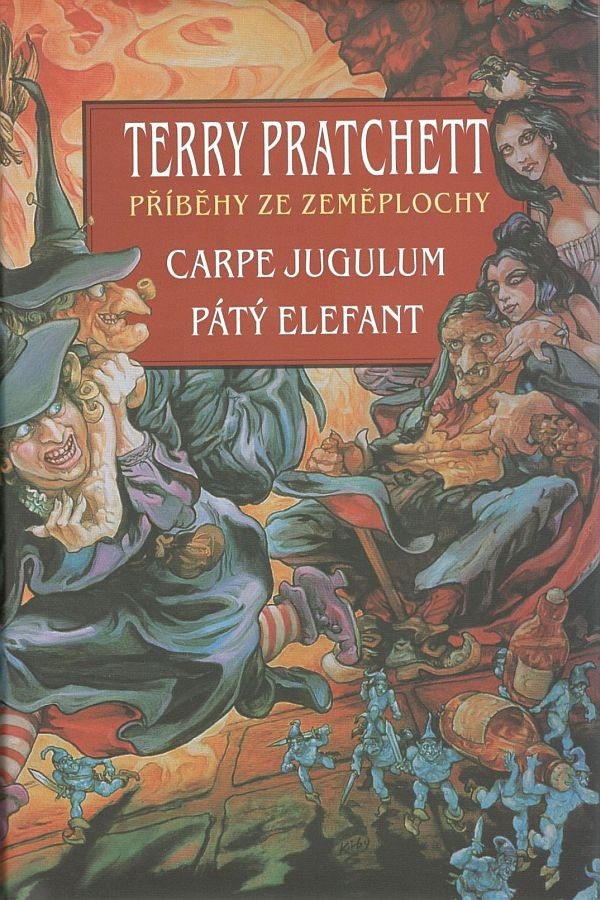 Magráta s Verencem mají dceru a připravují velkou oslavu k jejímu křtu. Na oslavu jsou pochopitelně pozvány i čarodějky - Bábi, Stařenka a Anežka Nulíčková. Bábino pozvání ukradnou straky a Bábi, která se cítí tímto domnělým přehlédnutím uražena, se rozhodne opustit Lancre, protože dojde k názoru, že už ji ostatní čarodějky nepotřebují. Na obřad dorazí poslední hosté, rodina upírů z Überwaldu. Chtějí získat Lancre, chtějí, aby se jeho obyvatelé stali jejich služebníky... a potravou. Jsou strašliví, protože se zdá, že nemají žádné zábrany a nedají se zastavit... Pátý elefant! Mýtické zvíře. Podle trpasličí legendy kdysi v pradávných dobách spadl v oblasti Uberwaldu. Proto se tam dnes vyskytuje obrovské tukové a jiné podzemní bohatství. A především tuk je nedostatkový artikl dokonce i v Ankh-Morporku. Uberwaldští trpaslíci a s nimi trpaslíci většiny Zeměplochy mají volit dolního krále. Ze dvou kandidátů: konzervativního a pokrokového. Podle toho, který to bude, se bude chovat k lidem i celé trpaslictvo. Volbu (a pak samozřejmě obchodní politiku) může ovlivnit nově jmenovaný Ankh-Morporský velvyslanec v Bjonku, jeho excelence, vévoda Ankhský, sir Samuel Elánius, za vydatné pomoci své ženy. Jedna z politických frakcí však chce udržet Uberwald a snaží se v tom siru Elániovi zabránit. Stojí tedy proti němu trpaslíci - zpátečníci, Anguini příbuzní - vlkodlaci a místní upíři. Angua mizí. Karotka najme jako stopaře a tlumočníka Gaspodu (biftek ke každé večeři) a vydá se po jejich stopách. Ankh-Morporská hlídka pod vedením serž-pardon, kapitána Tráčníka se rozpadá! Milion dobrodružství! Napětí! Hrůza! Láska! Přírůstek do rodiny! Jediný slon!