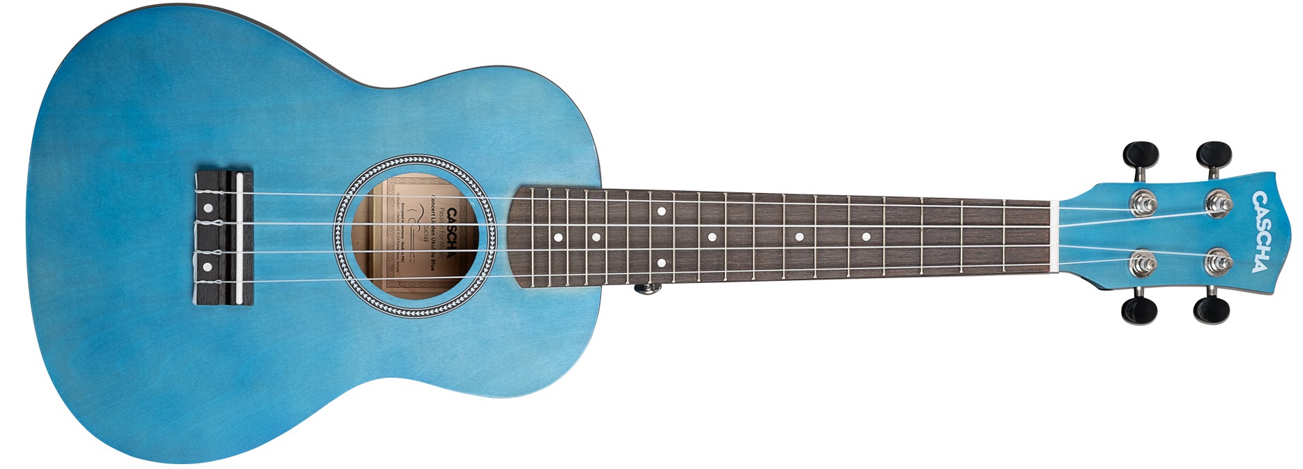 Akustické ukulele Akustické ukulele Cascha CUC103S Concert Linden Blue je cenově dostupný nástroj vhodný pro začínající ukulelisty a ukulelistky. Nabízí tělo zhotovené z laminované lípy, lipový krk, hmatník a kobylku z kompozitního materiálu a firemní ladící mechaniky kytarového typu. Set obsahuje ukulele v koncertní velikosti, obal, tři trsátka, klipovou ladičkou a učebnici hry na ukulele Learn to Play ve čtyřech jazycích (angličtině, němčině, francouzštině a španělštině). Značka Cascha nabízí široké spekt
