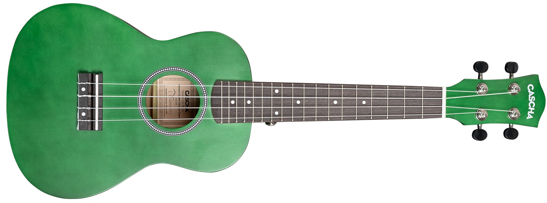 Akustické ukulele Akustické ukulele Cascha CUC104S Concert Linden Green je cenově dostupný nástroj vhodný pro začínající ukulelisty a ukulelistky. Nabízí tělo zhotovené z laminované lípy, lipový krk, hmatník a kobylku z kompozitního materiálu a firemní ladící mechaniky kytarového typu. Set obsahuje ukulele v koncertní velikosti, obal, tři trsátka, klipovou ladičkou a učebnici hry na ukulele Learn to Play ve čtyřech jazycích (angličtině, němčině, francouzštině a španělštině). Značka Cascha nabízí široké spek