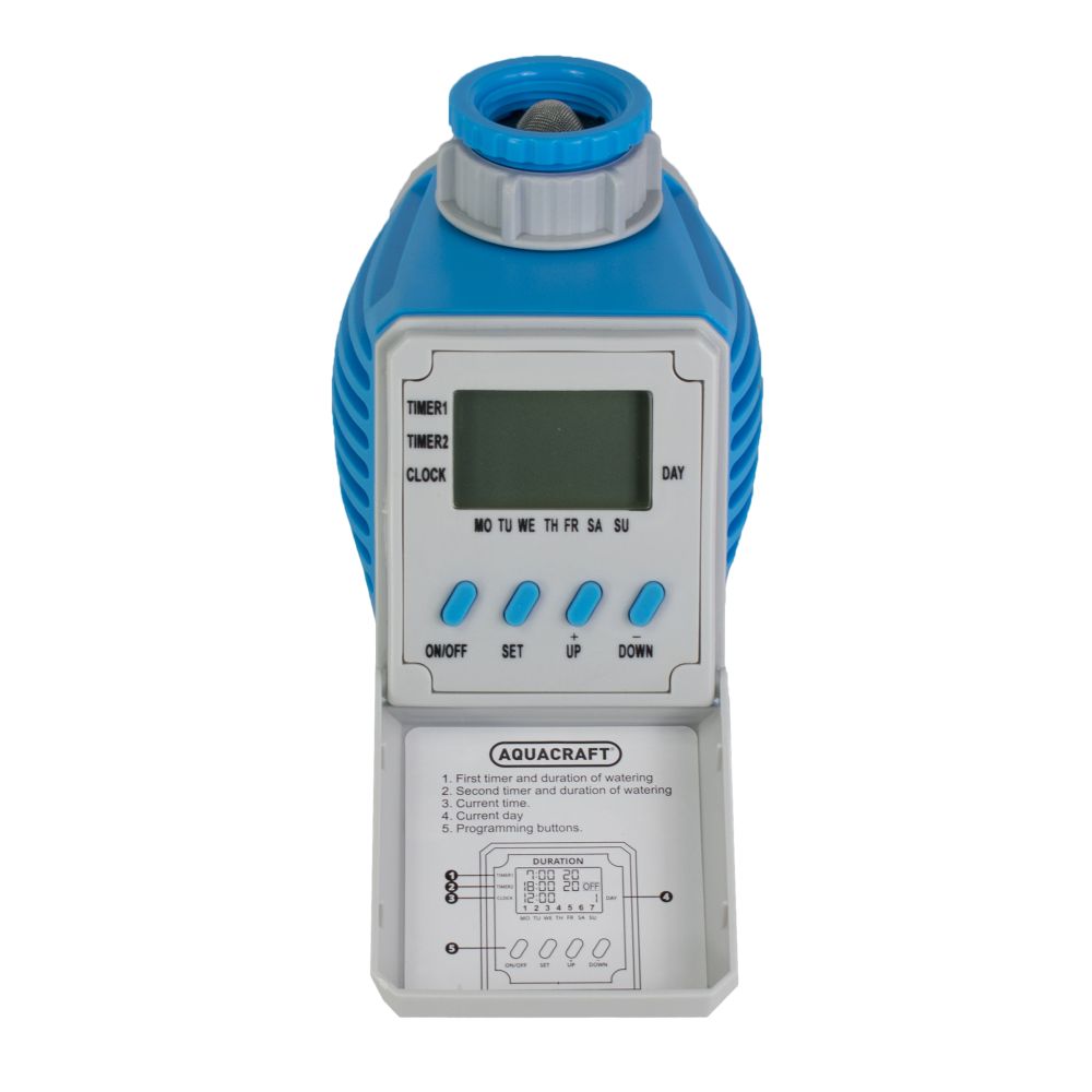 Automatický časovač pro pravidelné zavlažování s digitálním displejem. Časovač je napojený na přívod vody a ventil otevírá pouze dle nastavení. Možnost nastavení na 7 dnů a to do dvou programů. Délka programu 1 - 99 minut. Připojení na ventil:závit 3/4" - 1"Výstup:adaptér na rychlospojkuMax. tlak:6 barZdroj:9 V baterie ( není součastí )