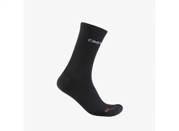 Ponožky od značky Castelli jsou navrženy pro maximální tepelný komfort během nejchladnějších dnů na kole. Jsou z kombinace merino vlny, která poskytuje přirozené teplo a výbornou regulaci vlhkosti, a nylonu, který zajišťuje potřebnou odolnost a dlouhou životnost. Díky vysokému střihu s výškou manžety 18 cm dobře drží na noze a zároveň chrání větší část lýtka před chladem.