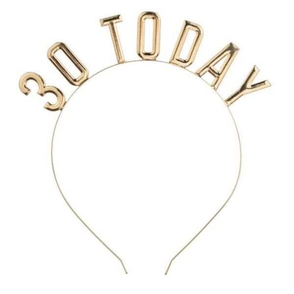 0 Čelenka 30 Today Oslavte odvážně vaše jubilejní 30.narozeniny s touto zlatou čelenkou s číslem 30a nápisem today a všem s ní dejte vědět, že právě dnes je ten slavný narozeninový den. Nezůstanete bez povšimnutí. Materiál : plast Velikost: univerzální
