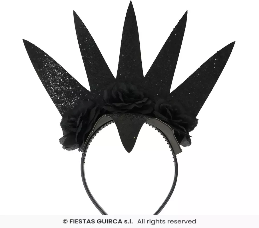 Tato čelenka v podobě černé koruny s květinami dodá vašemu kostýmu mystický a tajemný nádech. Skvělý doplněk pro čarodějnice, temné královny či halloweenské převleky. Díky lehké konstrukci a pohodlnému nošení bude perfektním doplňkem pro celovečerní párty či karneval.