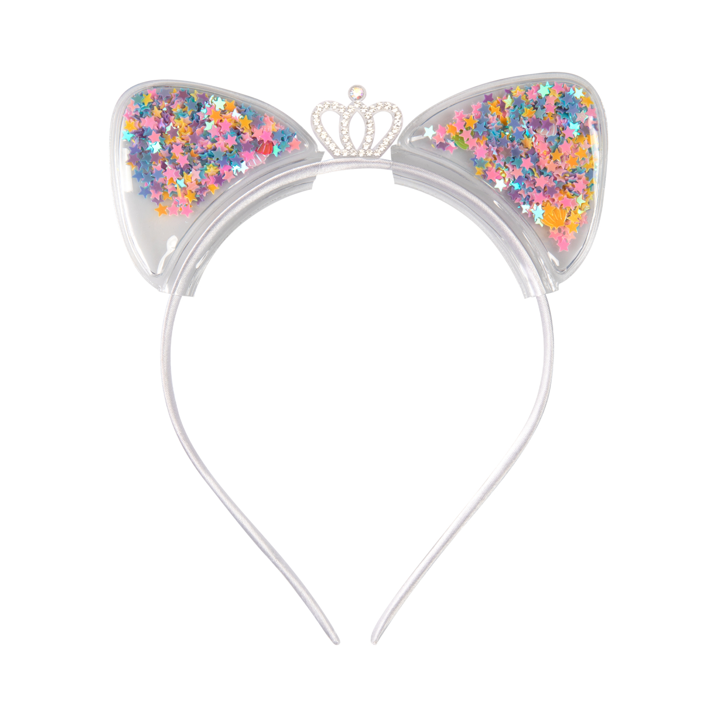 Dětská čelenka ozdobená kočičími oušky a korunkou potěší každou holčičku a hezky doplní její outfit při hraní, na tematické oslavě narozenin nebo na karnevalu. Rozměry: 14 × 15,7 cm Velikost: univerzální (určeno pro děti) Balení obsahuje: 1 ks párty čelenky Nevhodné pro děti do 3 let.