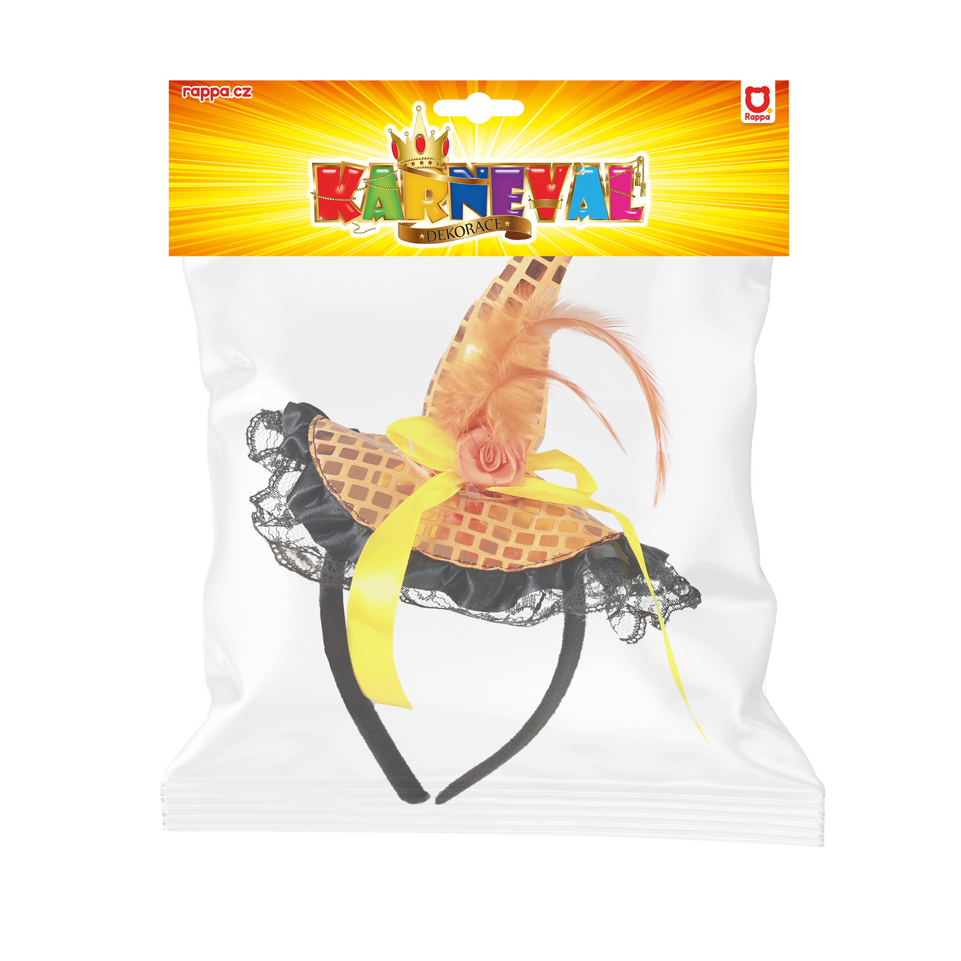 Nepřehlédnutelná čelenka s mini kloboučkem v oranžové barvě a černou krajkou je senzačním doplňkem na párty či karneval. Ideální ozdoba do vlasů při oslavě čarodějnic nebo Halloweenu. Zakupte produkt Čelenka s čarodějnickým mini kloboučkem z kategorie Hry, hračky, párty, karneval | Karneval | Doplňky od výrobce RAPPA za cenu 62 Kč.