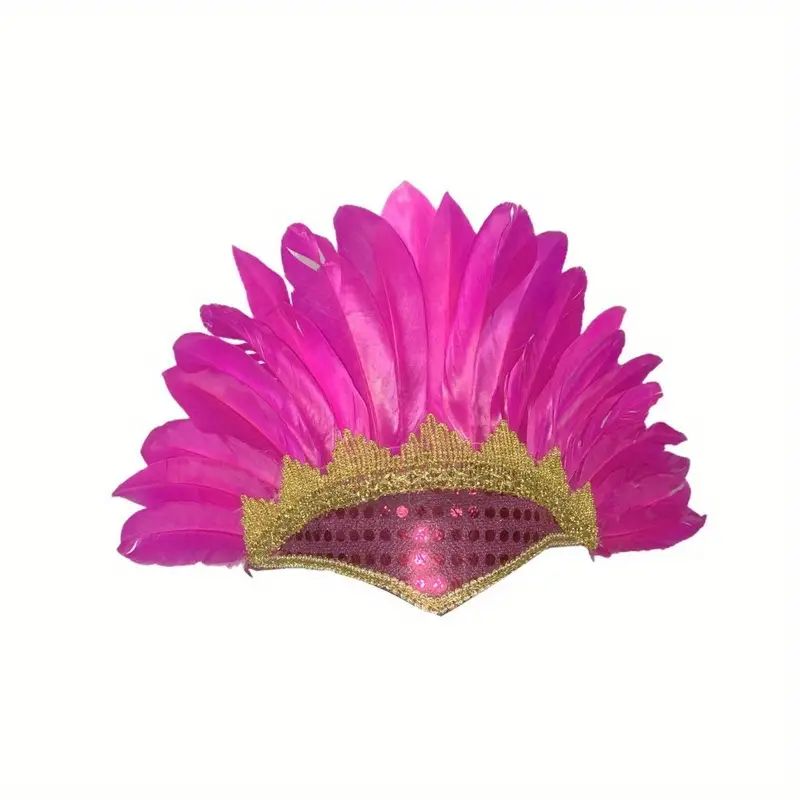 Peří dodává čelence eleganci i hravost, ať už zvolíte jakoukoli barvu. Ideální pro taneční párty, brazilské sambové večery nebo třeba karnevalový průvod!