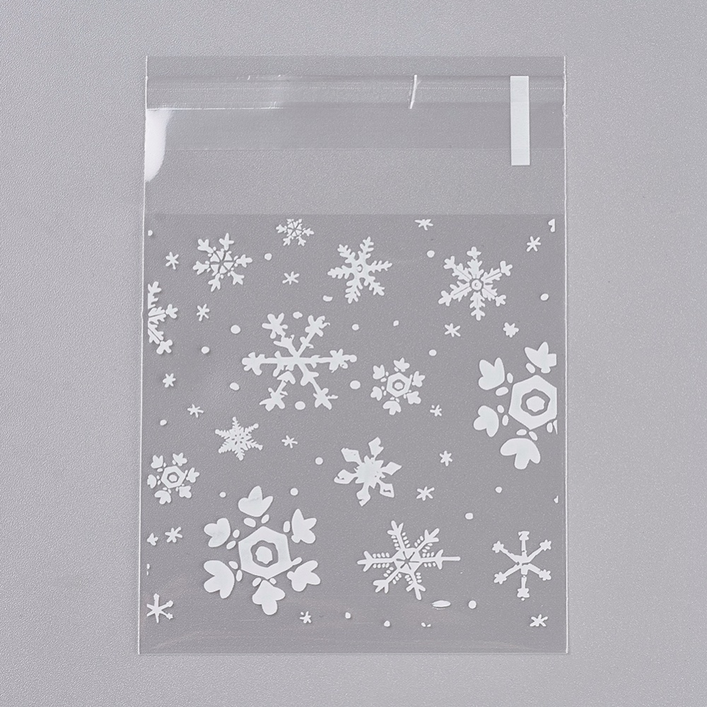 Kvalitní sáček vyrobený ze zcela transparentní polypropylenové fólie o celkové vnější délce 14,2 cm a šířce 14 cm s motivem bílých vloček. Sáček má svařované dno a strany, nemá boční ani spodní záložky, lepicí klopa je opatřena odnímatelným krycím páskem. Celofánový sáček se samolepicí klopou je ideální na balení korálků, šperků, nebo dárků. Celofánové sáčky prodáváme po balení, ve kterém je dvacet pět kusů (+- 1 ks).
