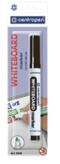 Popisovač na bílé tabule Centropen. Bílé plastové tělo. Vršek a uzávěr s klipem v barvě inkoustu. Popisovač na bílé tabule za sucha stíratelný. Zdravotně nezávadný, světlostálý, na alkoholové bázi. Skladovat ve vodorovné poloze! kulatý hrot 5 mm šíře stopy 2,5 mm