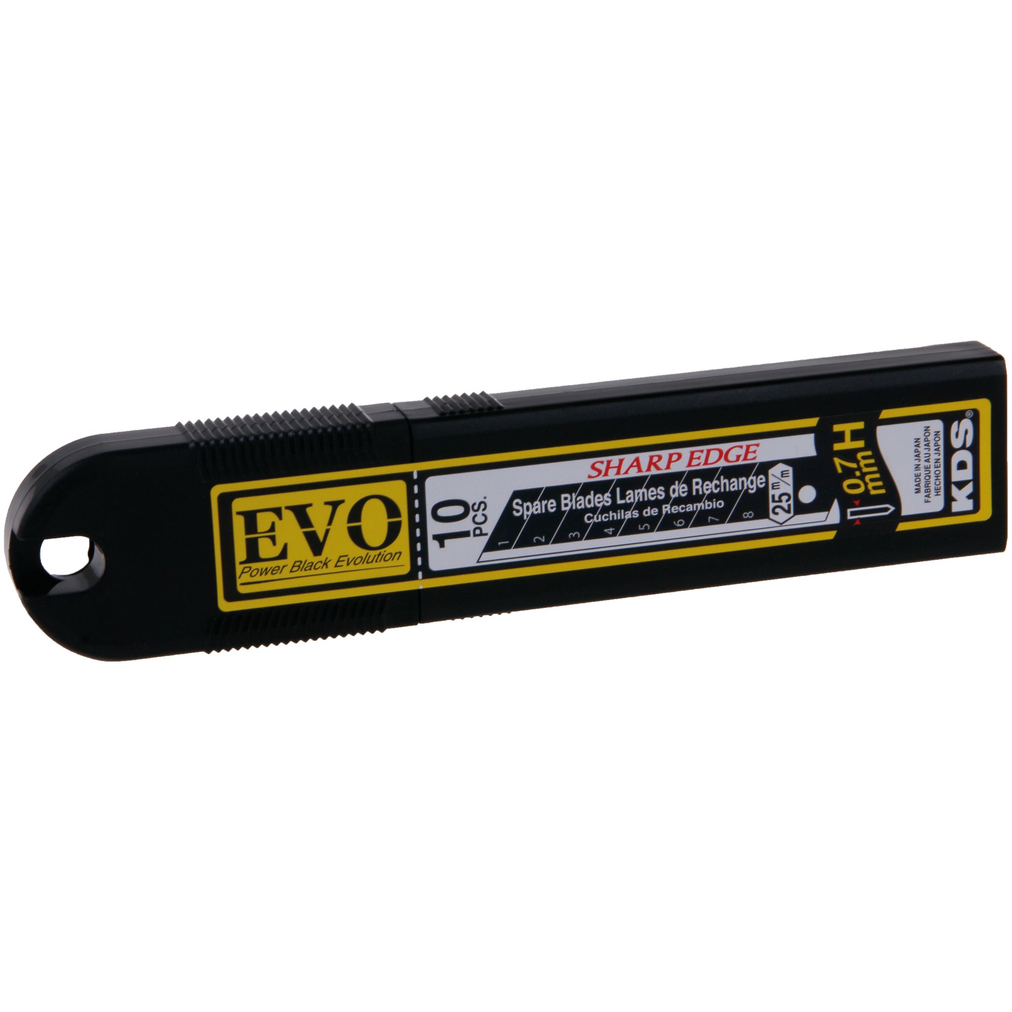 Odlamovací čepele KDS HB10B, 25mm × 0,7mm – 10ks, extra pevnéProfesionální odlamovací čepele KDS HB10B o šířce 25 mm a tloušťce 0,7 mm jsou určeny pro náročné řezání silných a tuhých materiálů. Díky zvýšené tloušťce jsou mimořádně odolné proti zlomení a výborně drží stabilitu i při větším zatížení.Jsou vhodné pro řemeslníky, průmyslové provozy, stavebnictví i další aplikace, kde je klíčová pevnost a přesnost řezu.Hlavní vlastnosti:• Rozměr čepele: 25mm × 0,7mm• Balení: 10 ks v zásobníku• Materiál: kvalitní nástrojová ocel – dlouhá životnost, extrémní ostrost• Vysoká odolnost: vhodné pro profesionální použití• Použití: karton, koberce, PVC, sádrokarton, gumy, izolace, tvrdé fólie• Kompatibilita: pro všechny standardní nože na 25mm čepeleKDS – japonská preciznost pro každodenní řezání bez kompromisů.Model HB10B nabízí ideální kombinaci síly, bezpečnosti a výkonu i v nejnáročnějších podmínkách.
