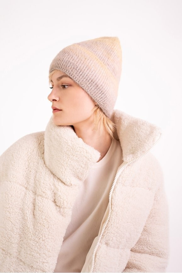 Zimní čepice klasického střihu a melanžového zbarvení - vyrobená z vysoce elastické tkaniny s příjemnou strukturou - tlumené, pastelové barvy - lze ji použít jako doplněk pro městský, sportovní i formální styl Složení: 100% polyester