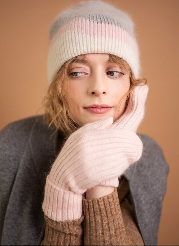 Dámská zimní čepice - klasický rozšířený střih - z vysoce elastické angorské tkaniny - čepice má pevnou, silnější vazbu, díky níž je velmi teplá a chrání uši před větrem Složení: 60 % angora, 40 % akryl