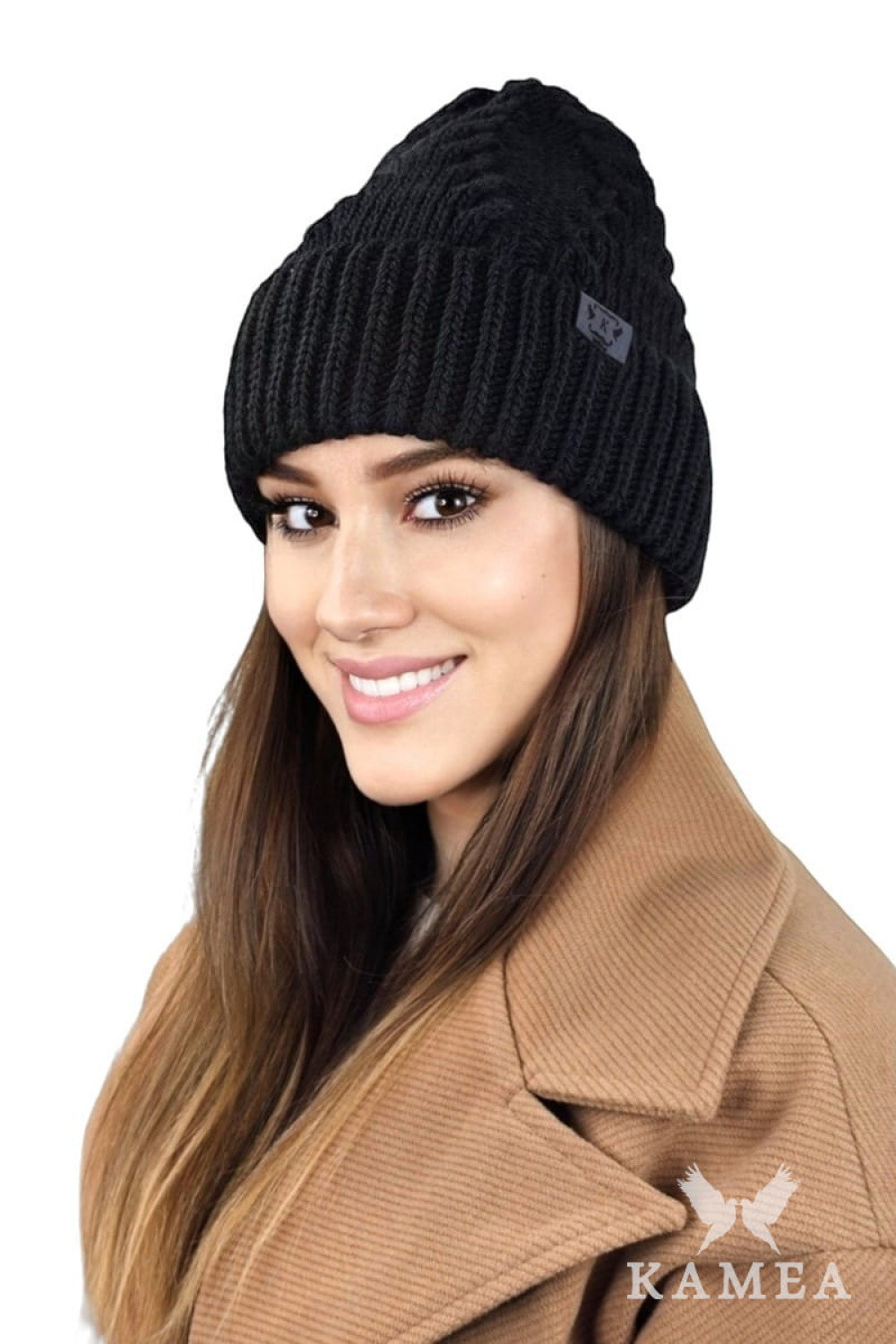 Dámská zimní černá čepice STELLA je esencí dokonalosti a perfekce. Jej ideální tvar a husté pletení přidávají jemnost a eleganci. Jednolitá černá barva zdůrazňuje fantastické vzory, které se krásně projevují na světle. Měkká na dotek, poskytující teplo a nepřekonatelný komfort nošení. Skvěle se hodí ke každému typu stylizace, ideální na chladné podzimní a zimní dny. Dostupná v několika barevných variantách, výrobky značky KAMEA zaručují nejvyšší kvalitu. Složení 50% AKRYL, 30% WE?NA, 20% POLYAMID