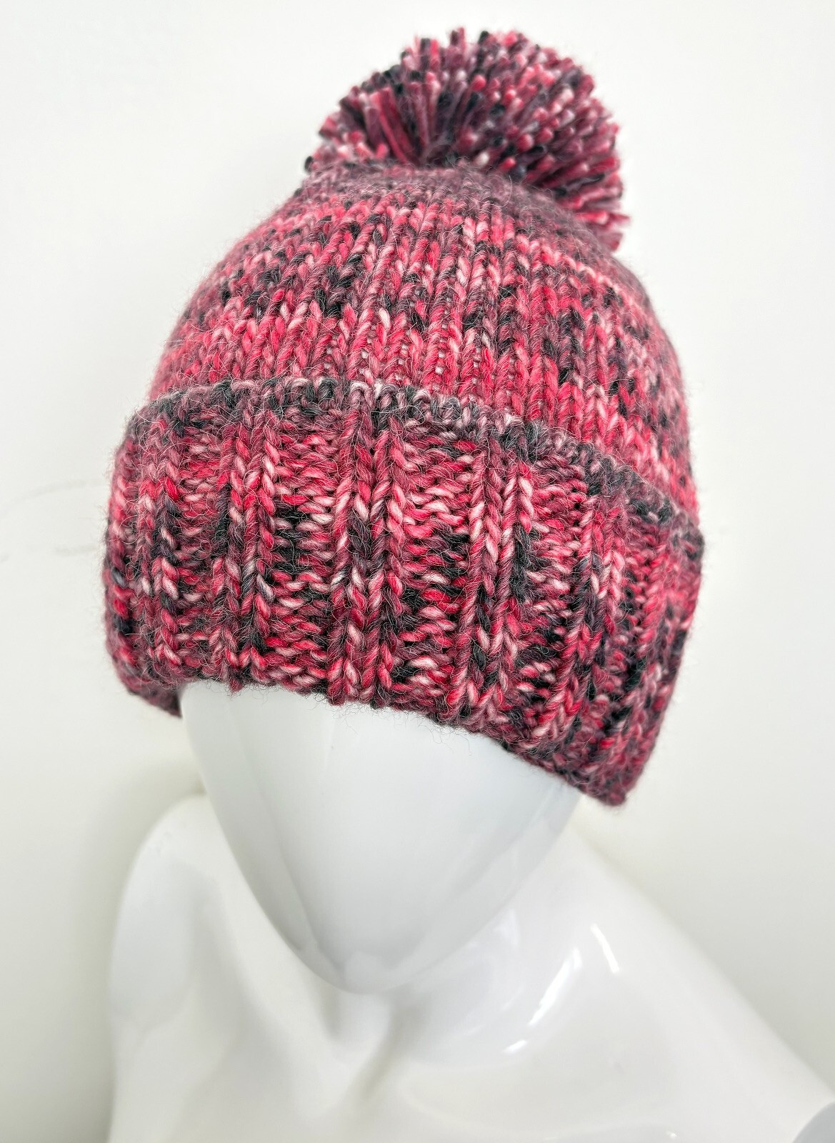 Dámská zimní čepice - měkká akrylová pletenina - zdobená bambulí - lemovaný okraj Složení: 75 % akryl, 15 % nylon, 10 % vlna