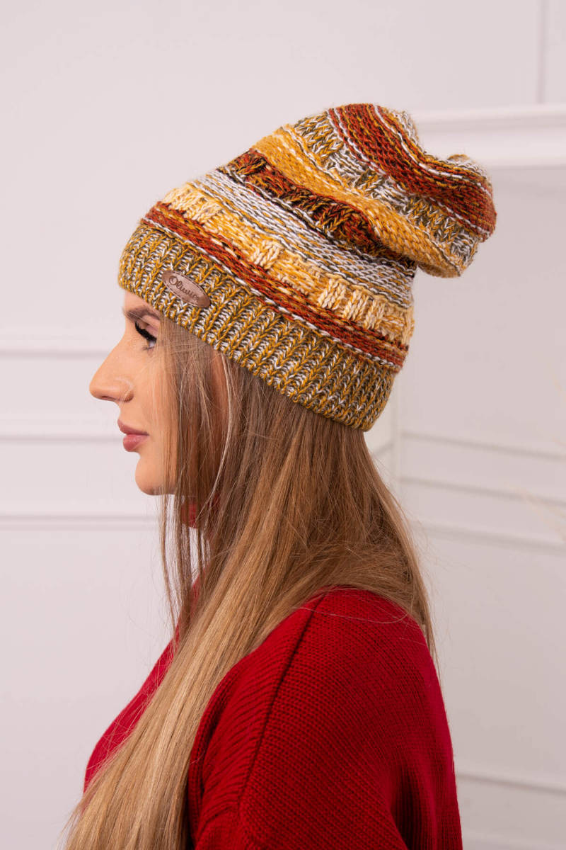 Čepice s fleecem Patrycja K254 hořčice+khaki UNI