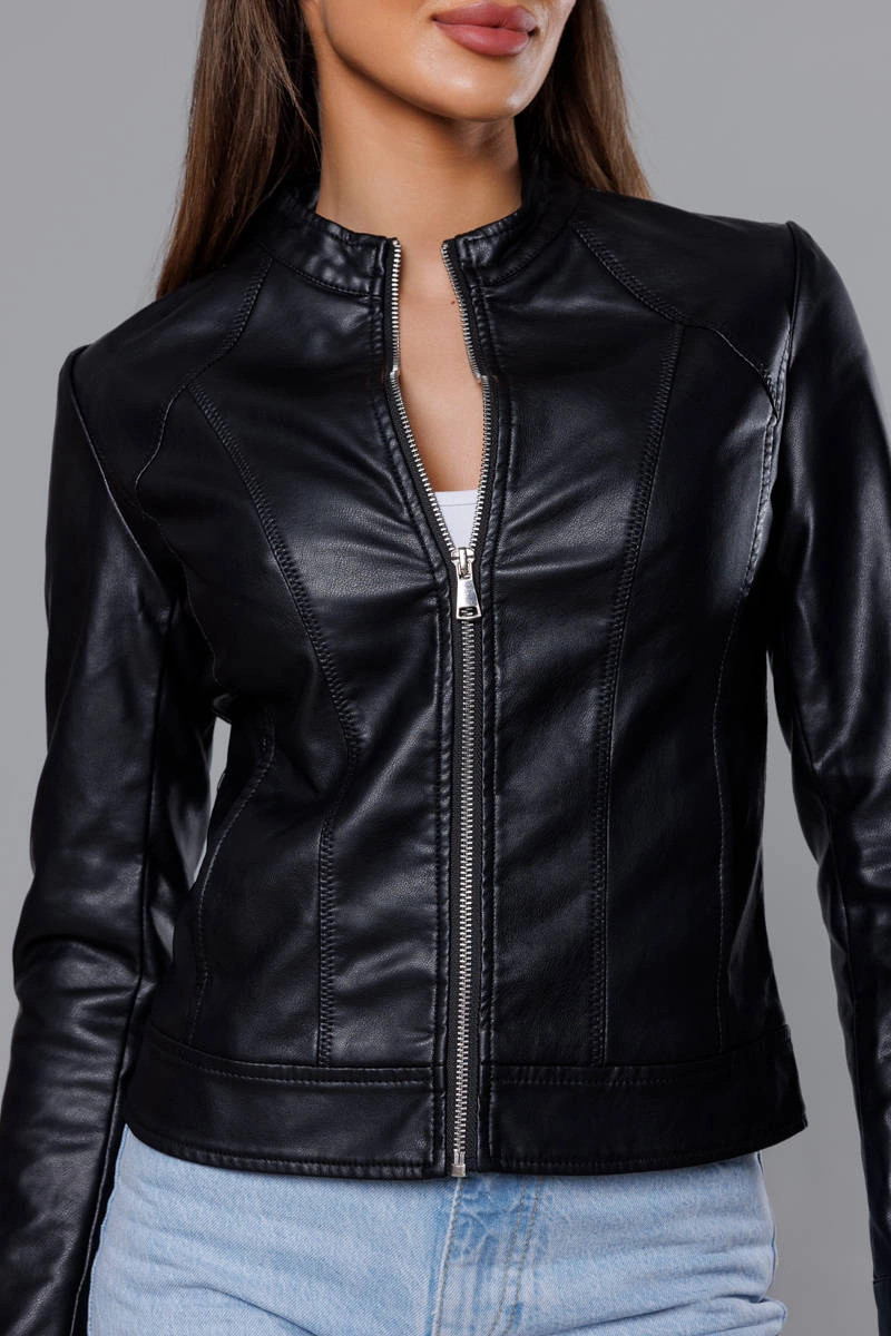 Věnujte prosím pozornost při výběru velikosti dle velikostní tabulky uvedené níže. Velikosti neodpovídají běžně nošené konfekci. Bunda ramoneska z ekologické kůže Bunda má jednoduchý střih, stojáček, dvě kapsy se zapínáním na patentky a zapíná se zipem. Model má délku k bokům. Složení: vrchní vrstva - 100 % PU; podšívka - 100 % polyester.