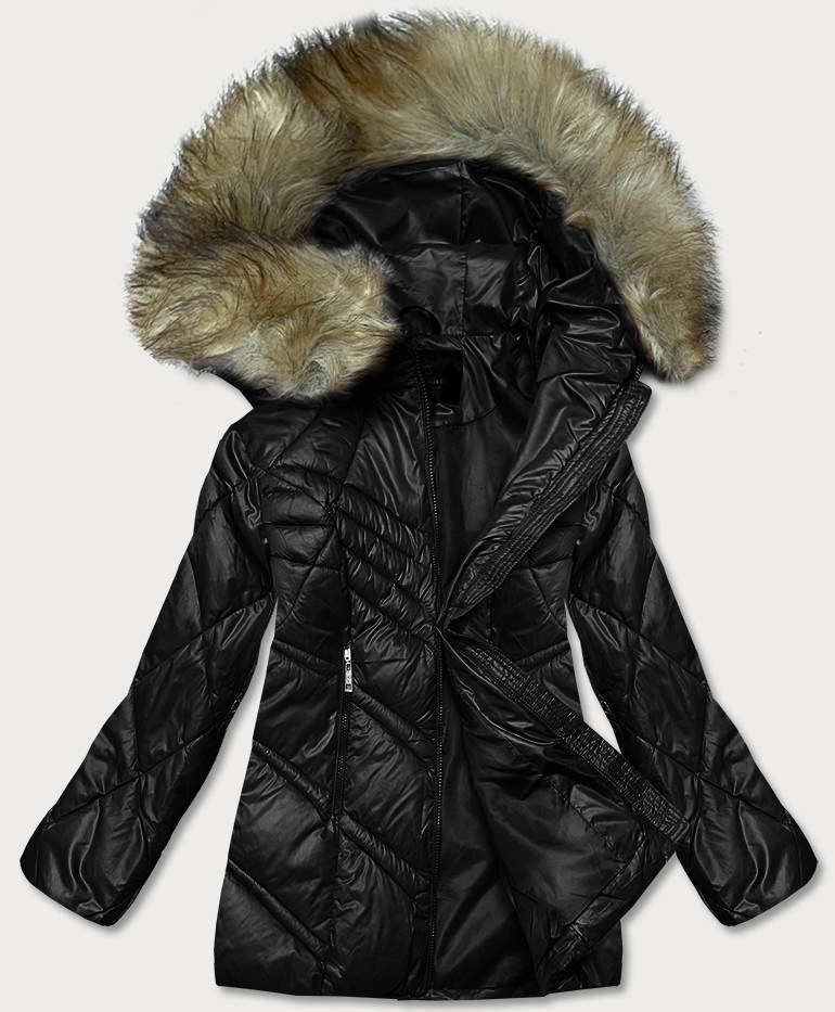 Černá dámská bunda pro přechodné období s kapucí (H-97-1) odstíny černé 48
