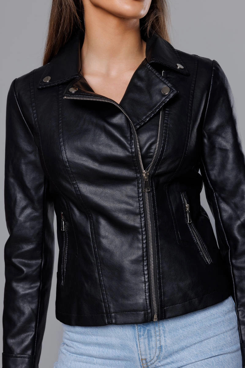 Věnujte prosím pozornost při výběru velikosti dle velikostní tabulky uvedené níže. Velikosti neodpovídají běžně nošené konfekci. Bunda ramoneska z ekologické kůže Bunda má jednoduchý střh, klopy, zapíná se asymetrickým zipem a má dvě kapsy. Model má délku k bokům. Složení: vrchní vrstva - 100 % PU; podšívka - 100 % polyester.